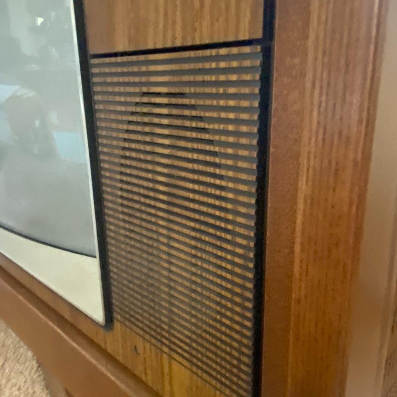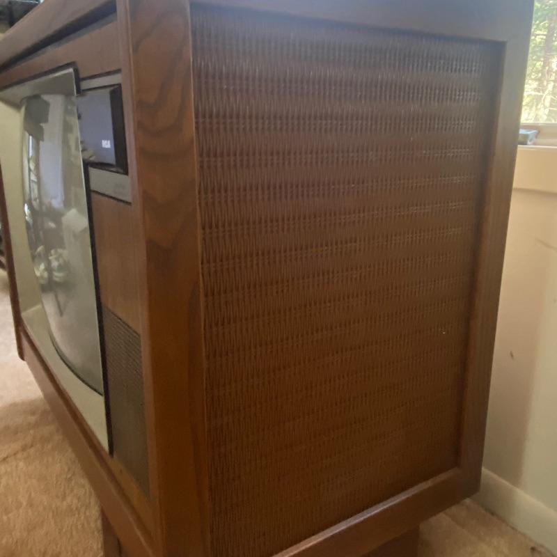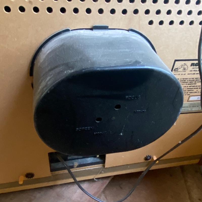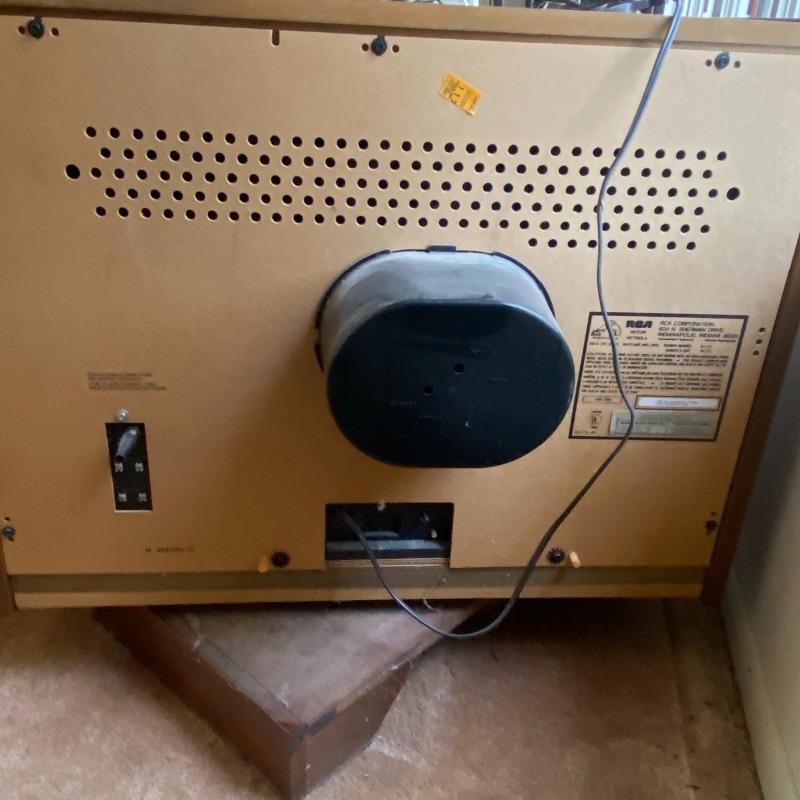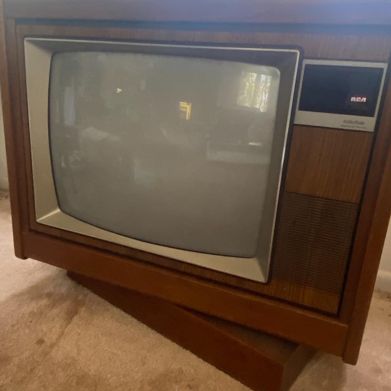 RCA color track swivel color TV with remote. Cords included but did not power on when tested. Great swivel movement. Measurements of the complete unit are 33”x23”x29”. See photos.