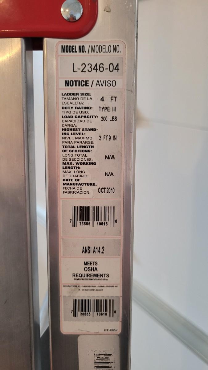 Lot 166: 4 Foot LOUISVILLE Aluminum Step Laddrr