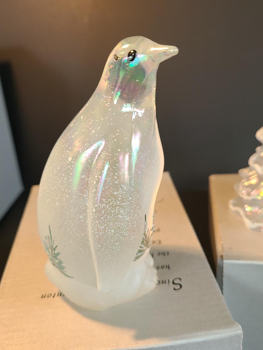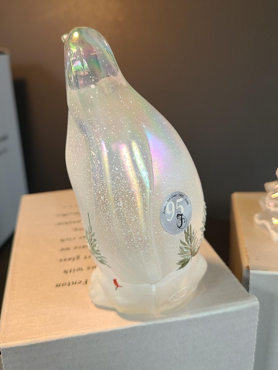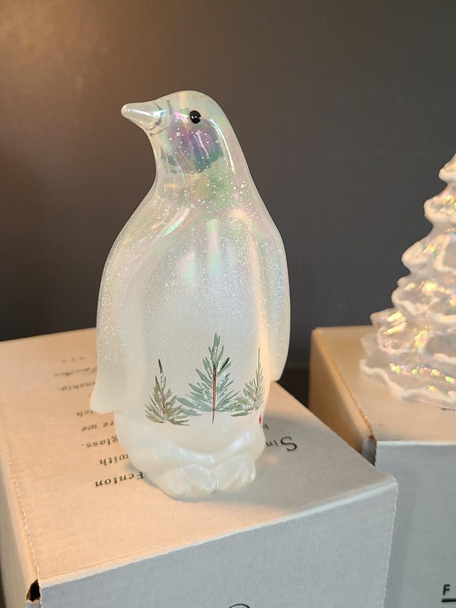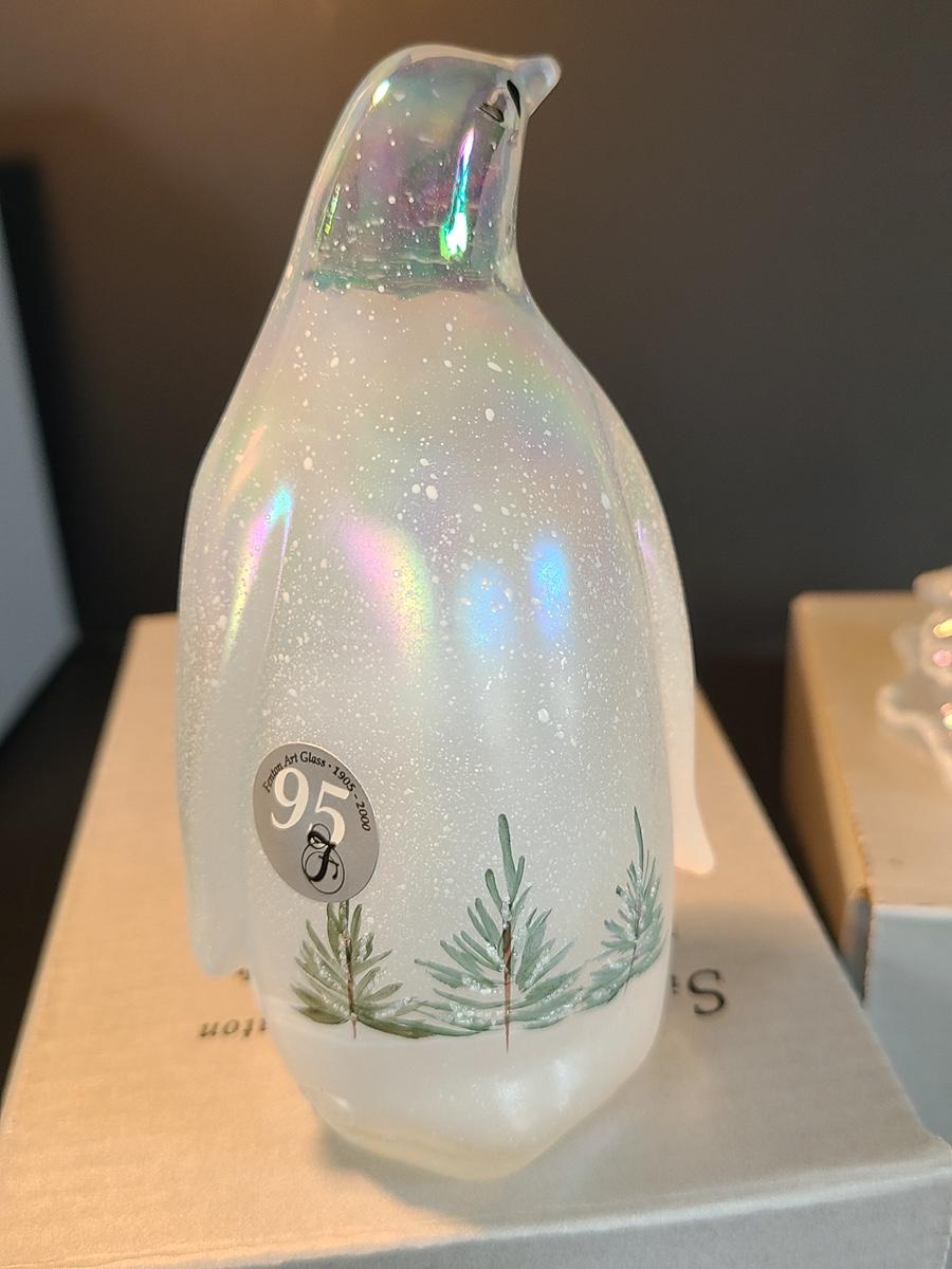 Lot 166: Fenton Woodland Penguin and Medium Iridescent Tree with Bow
