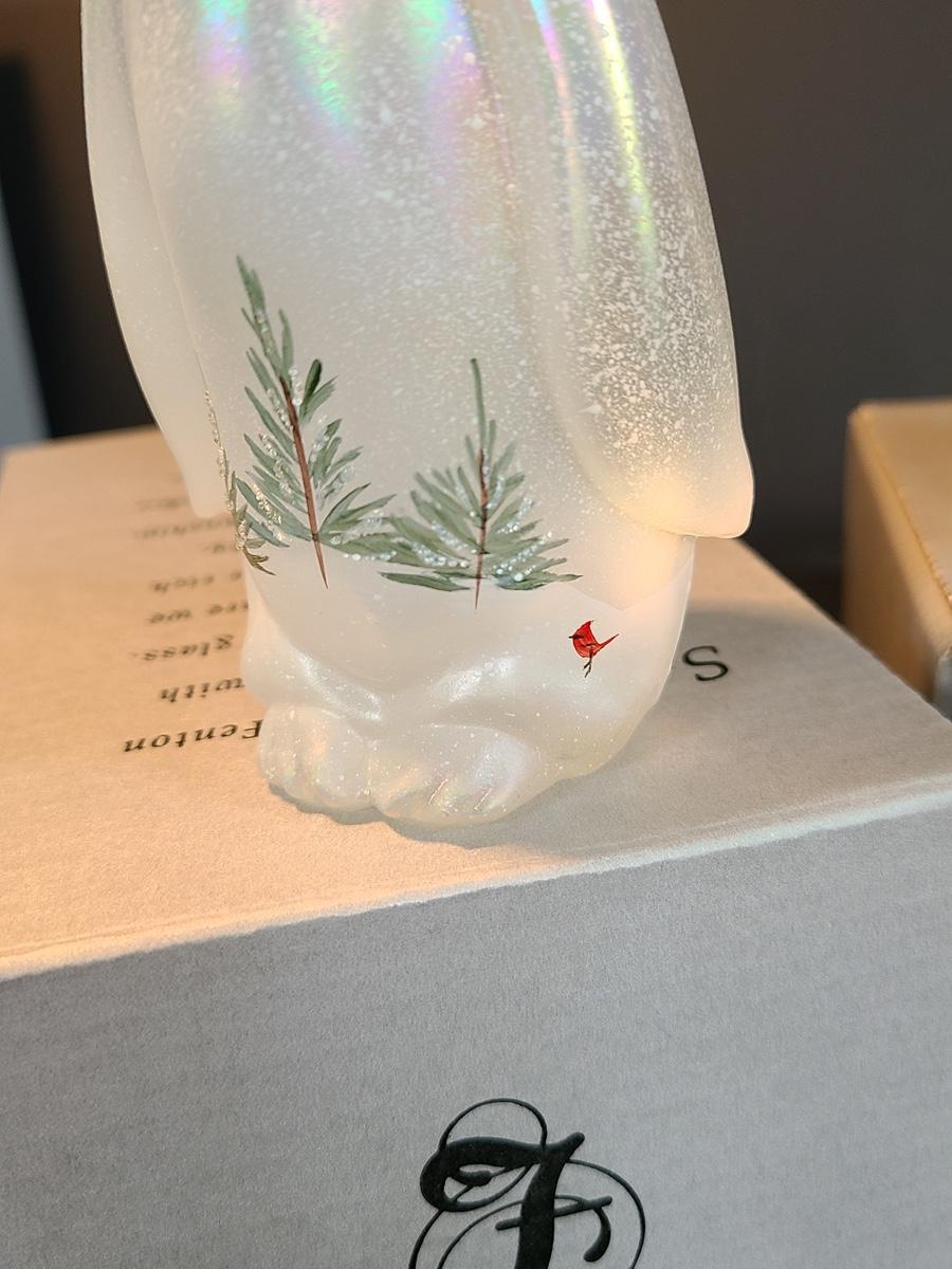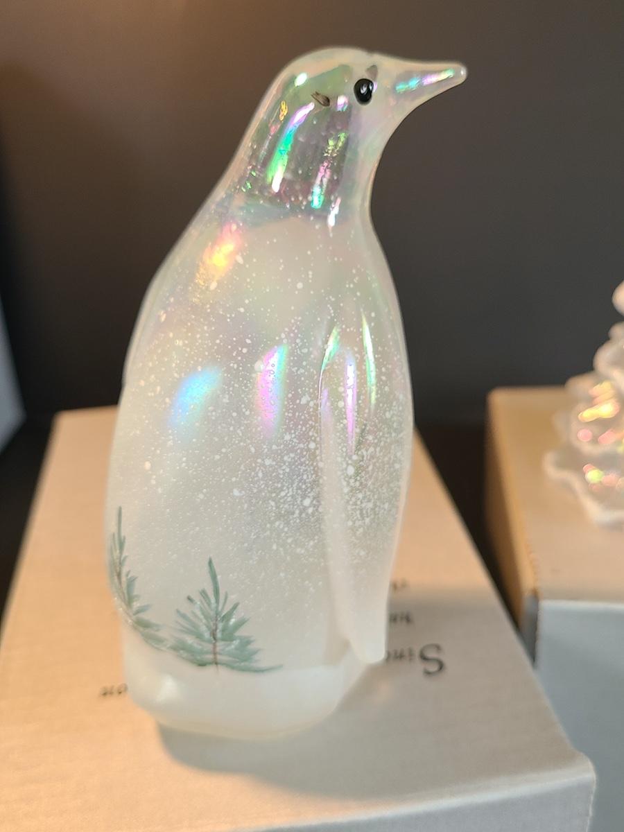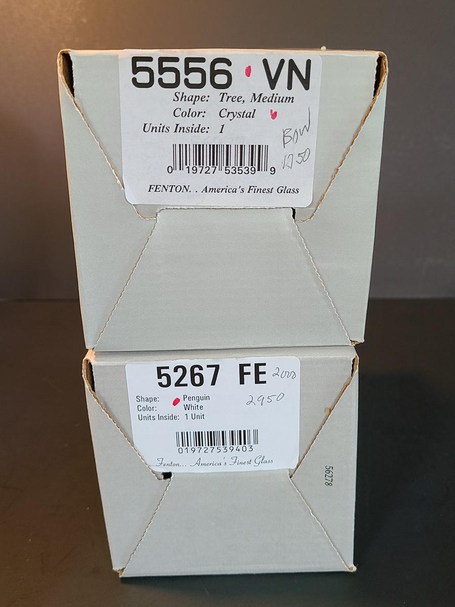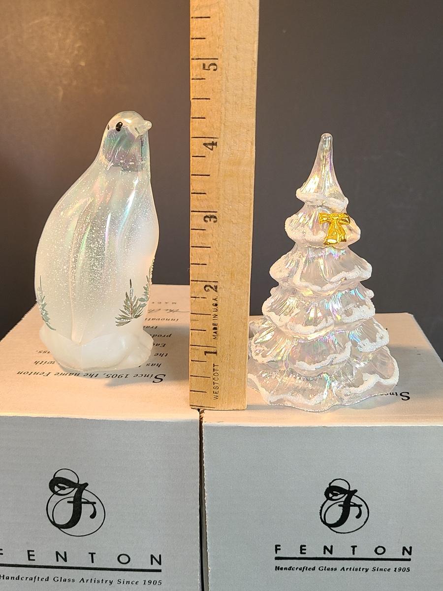 Lot 166: Fenton Woodland Penguin and Medium Iridescent Tree with Bow