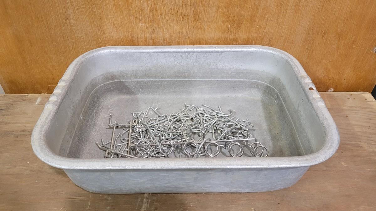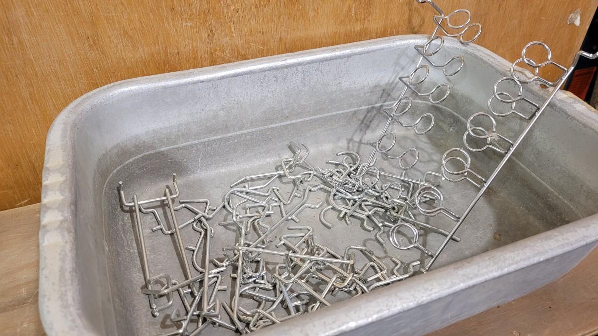 Lot 166: Vintage Steel Basin Tray w/ Assortment of Peg Board Hanger Accessories