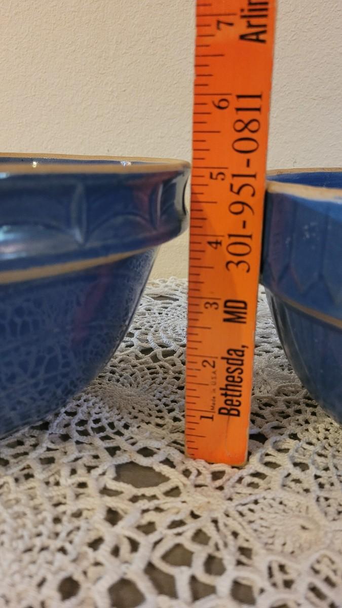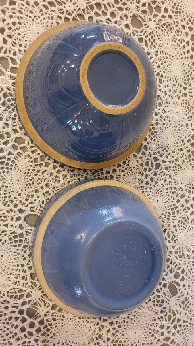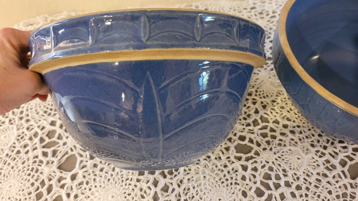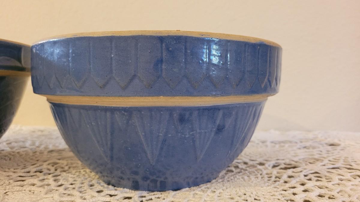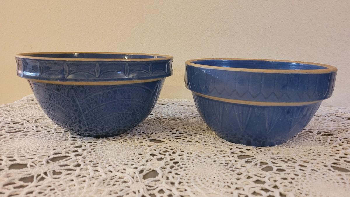 Lot 166: (2) Antique Blue Stoneware Bowls with Design