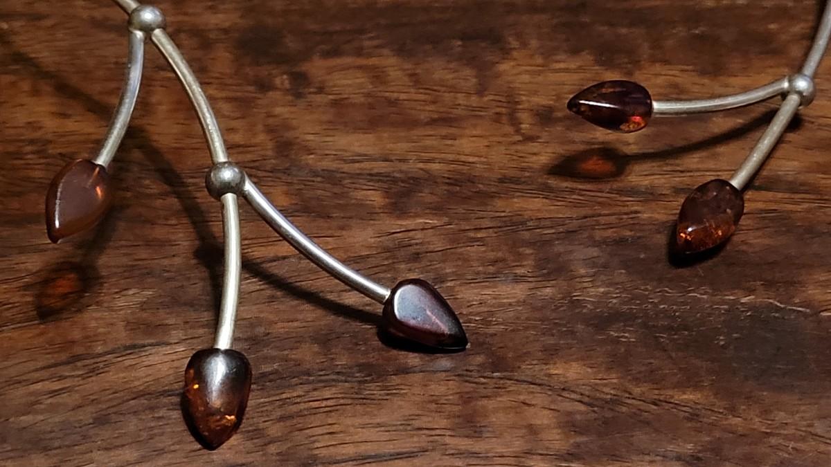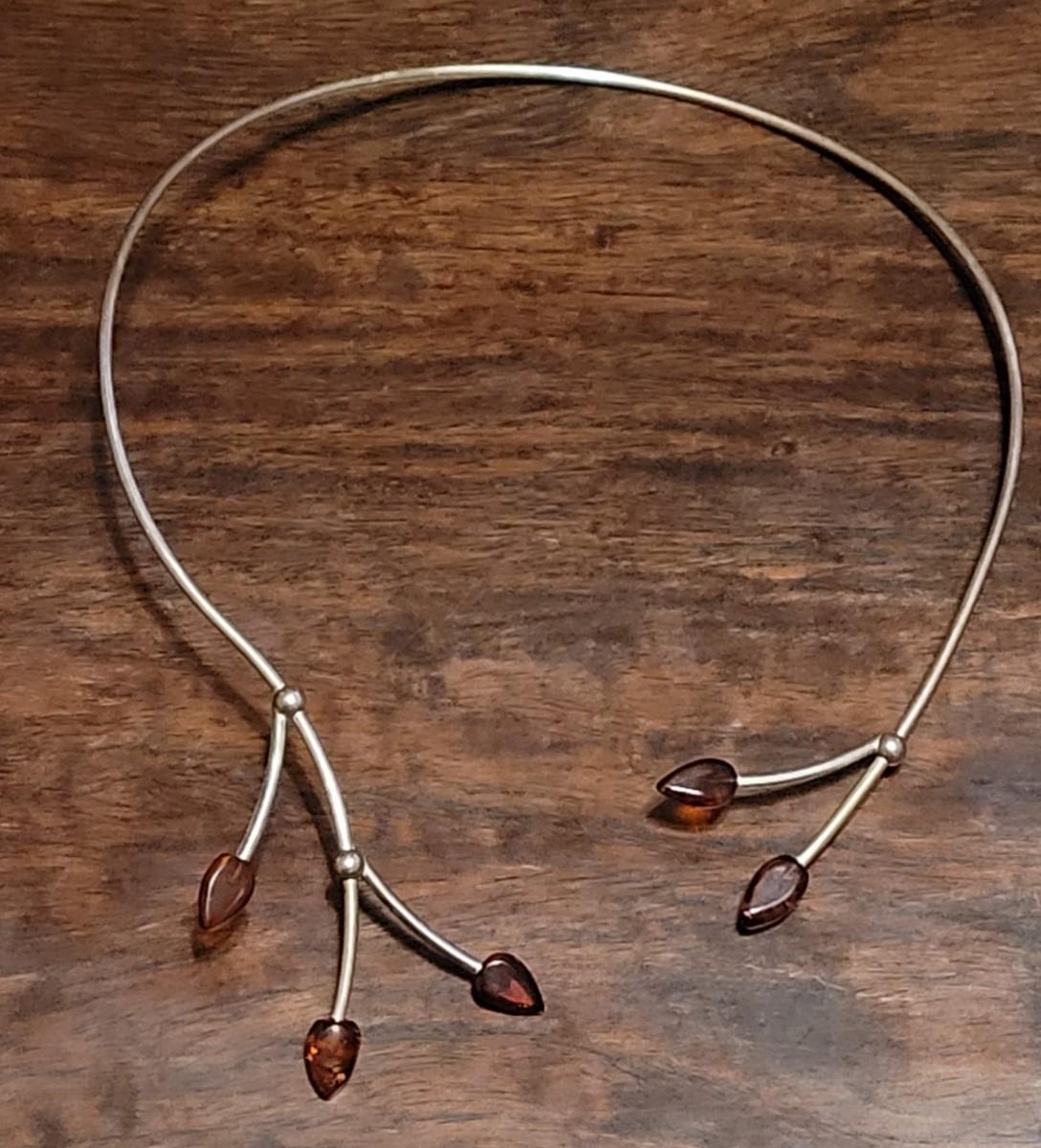 Lot 166: Vintage Amber and Sterling Wrap Necklace
