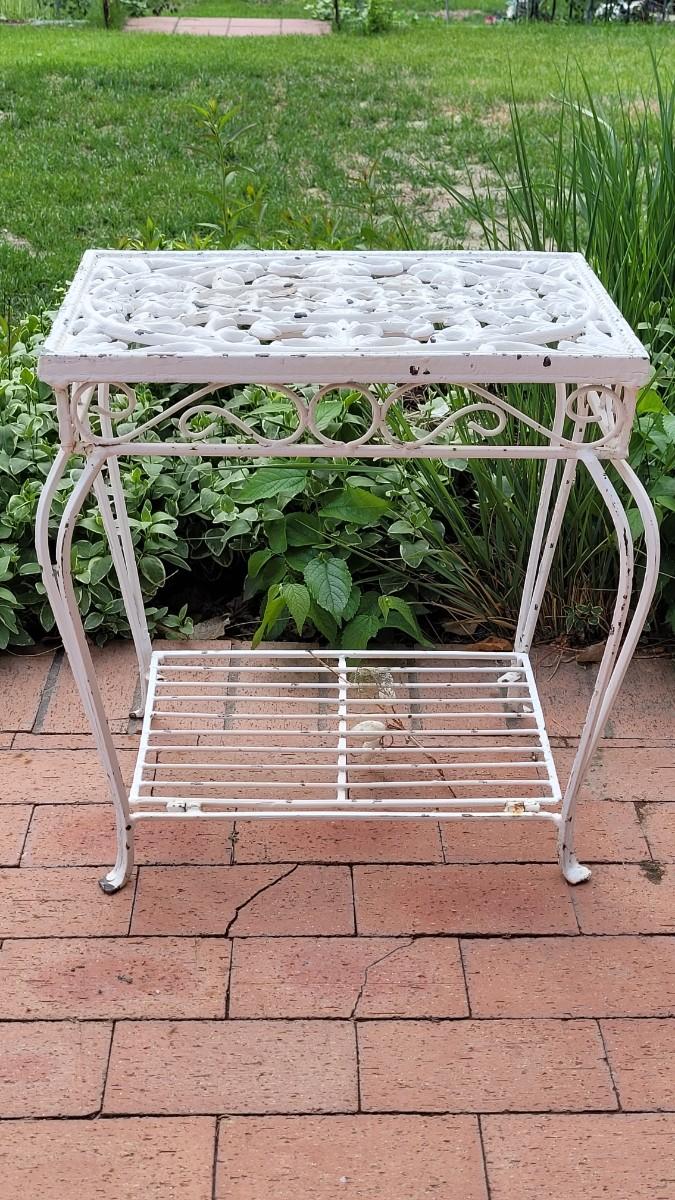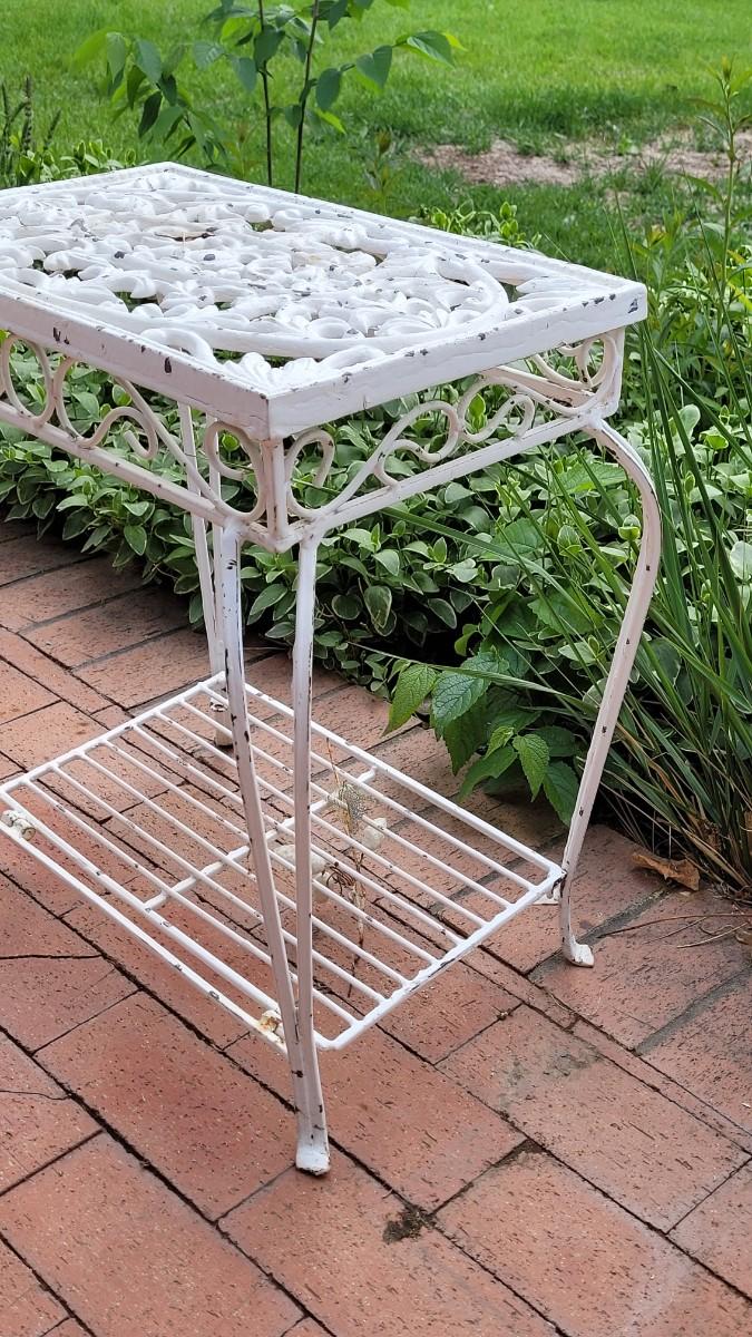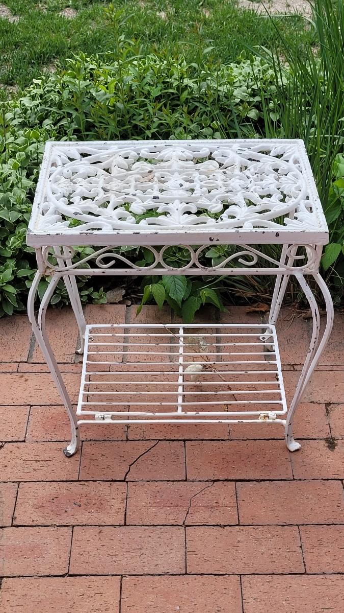 Lot 166: Vintage White Wrought Iron Plant Stand Table