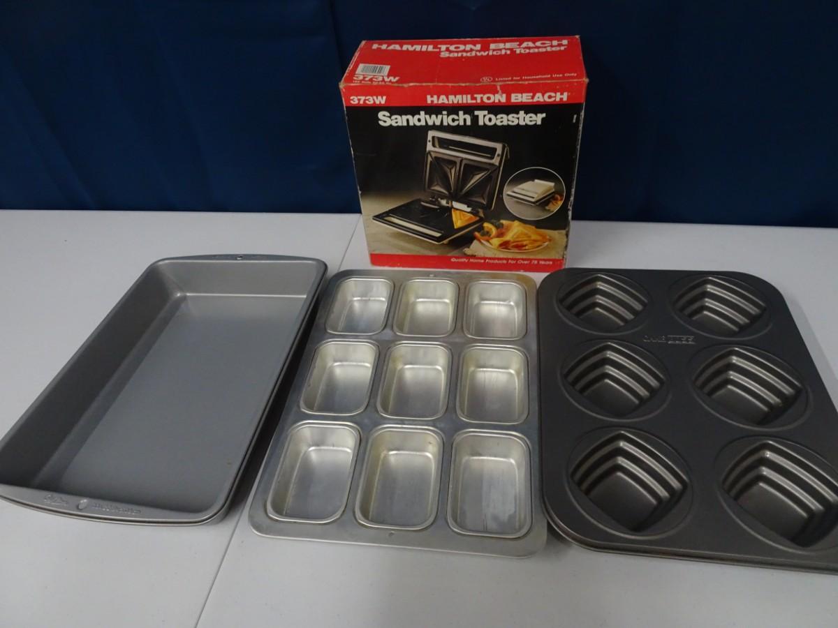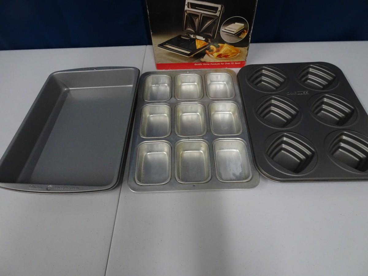 LOT 166. SANDWICH MAKER AND BAKING PANS