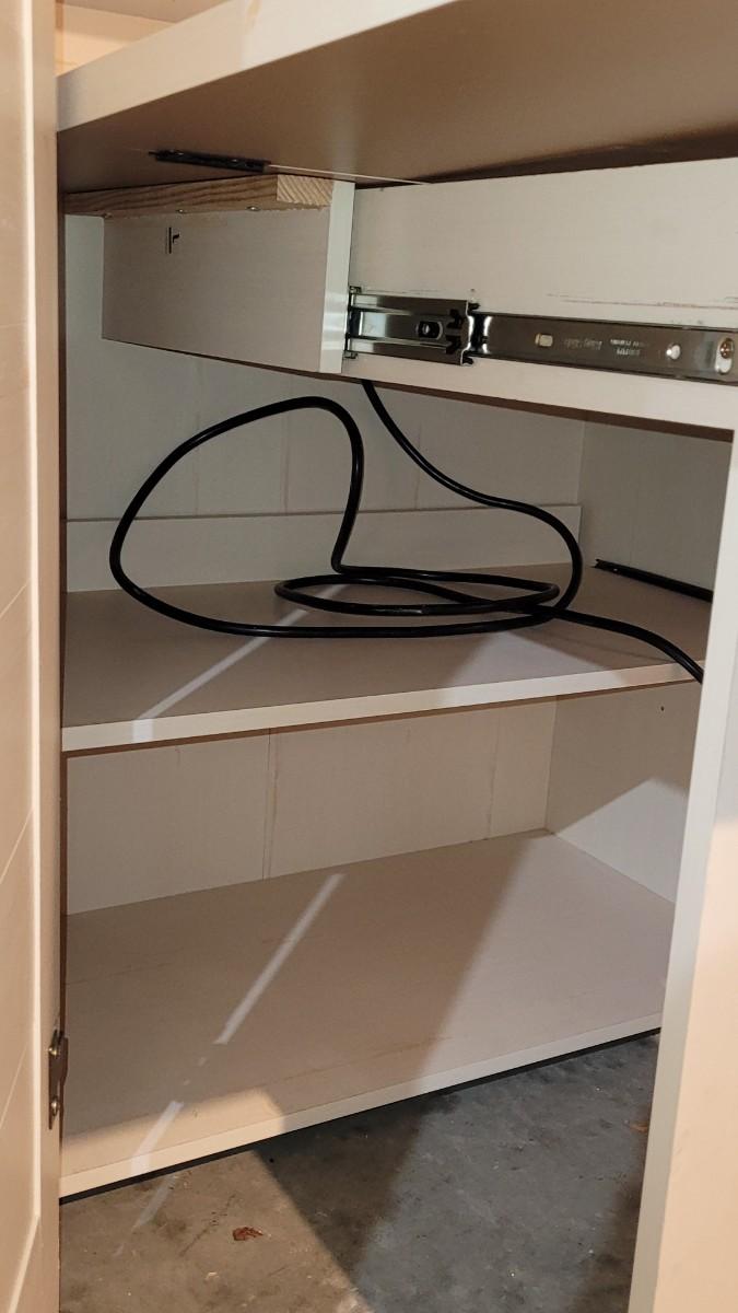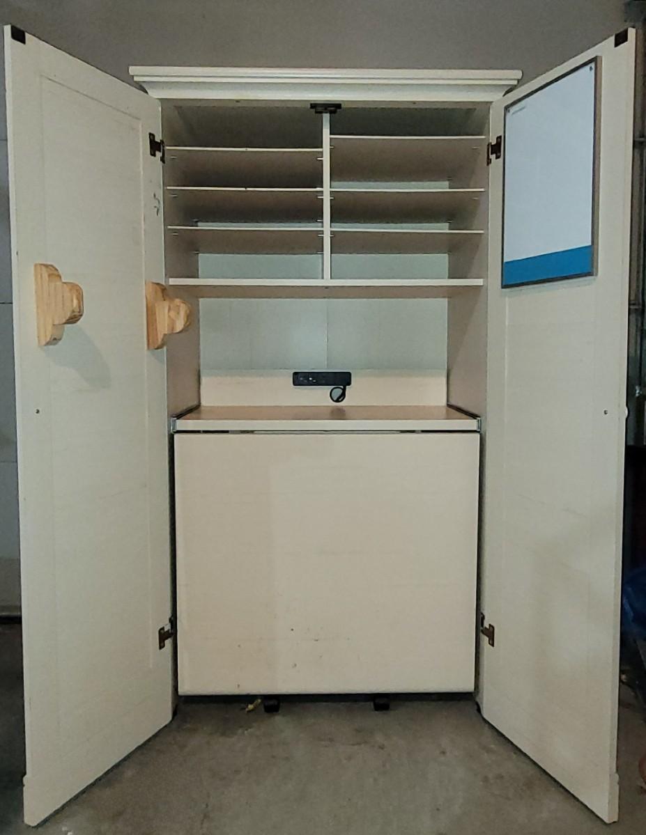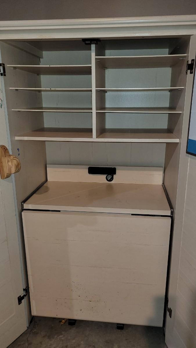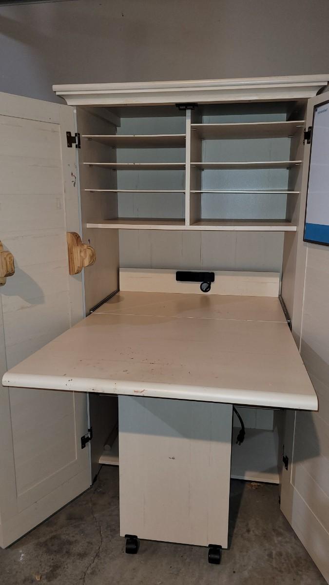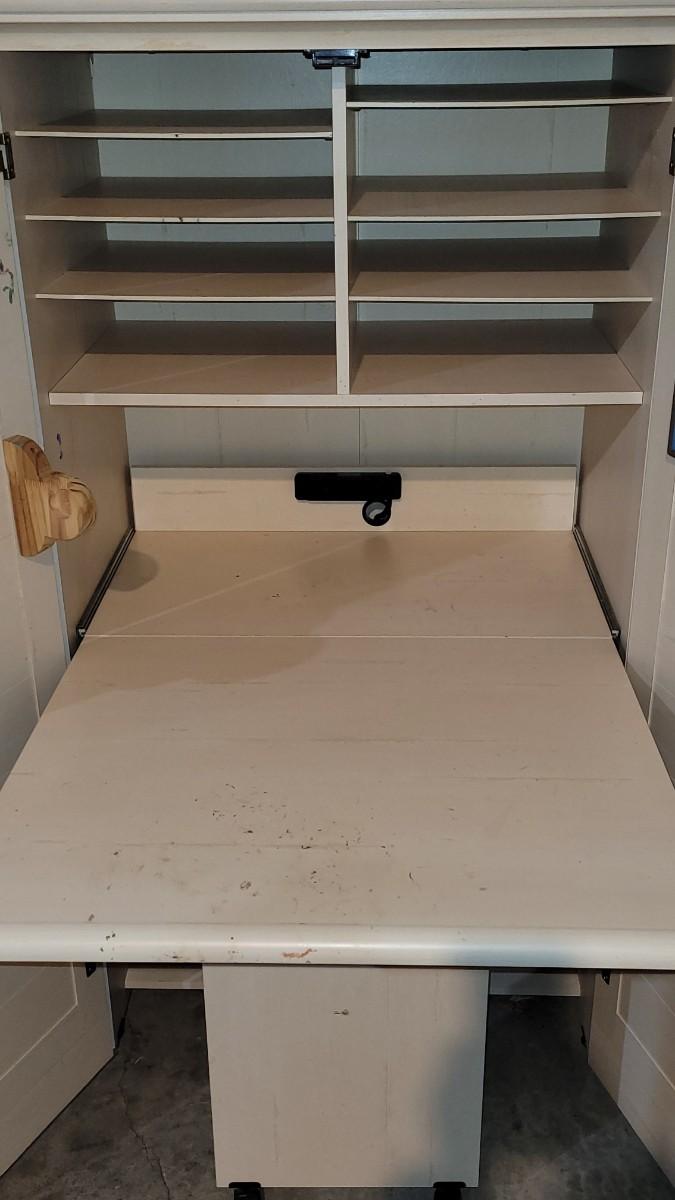 Has a power supply and extra gate leg surface. Has some paint spots on the flip up surface from Art making.