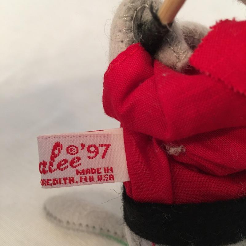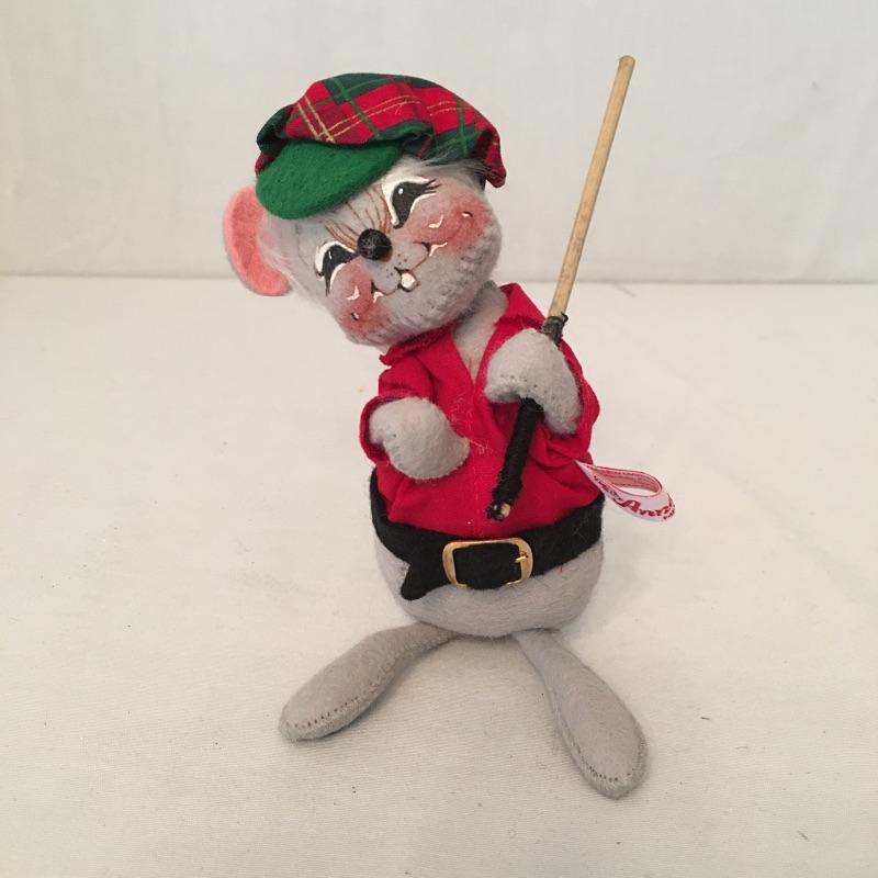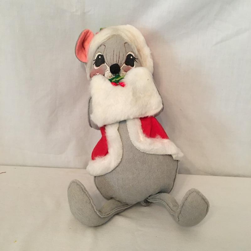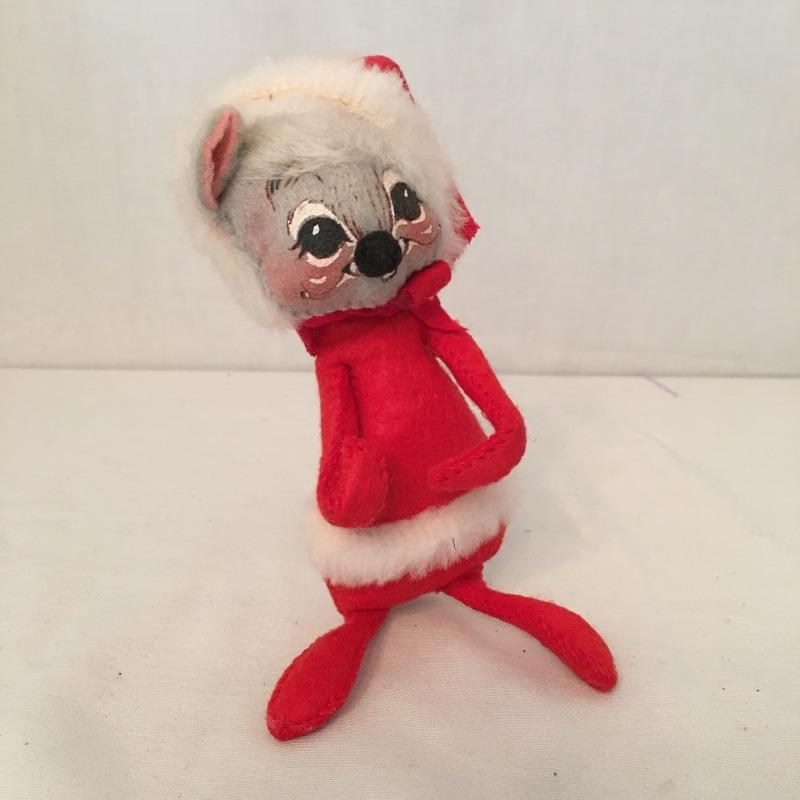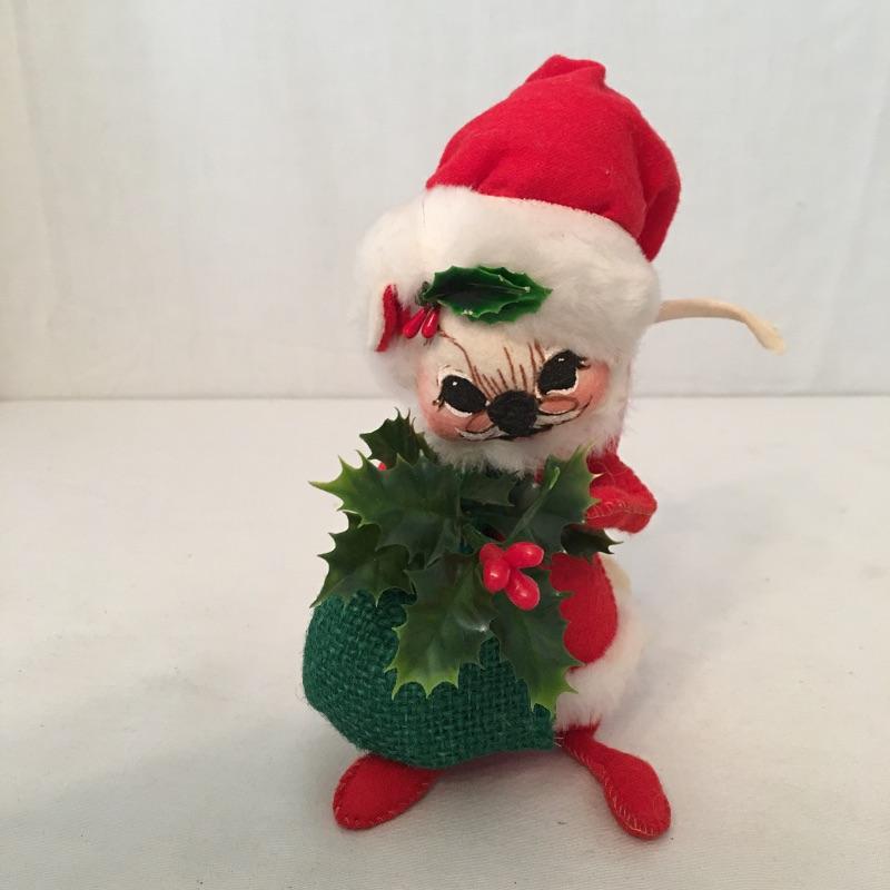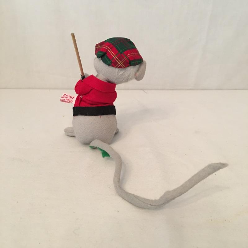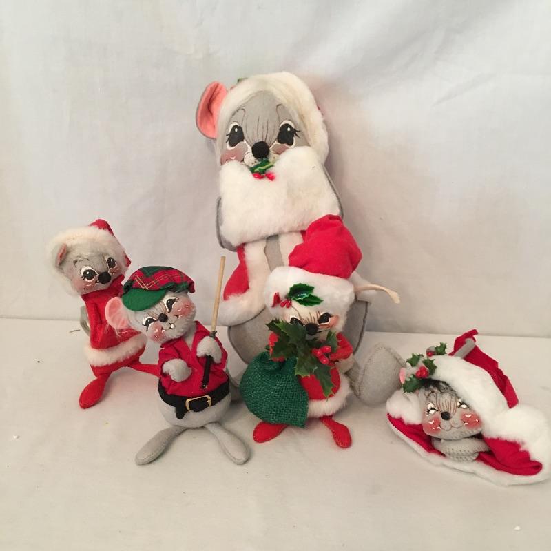 Wonderful collection of Winter and Christmas themed Annalee mice that includes a large mouse that measures 12” tall and four small mice including a mouse in a stocking, mouse with pool cue, mouse with presents and a mouse in a red outfit. See tags for the years as these appear to be vintage.