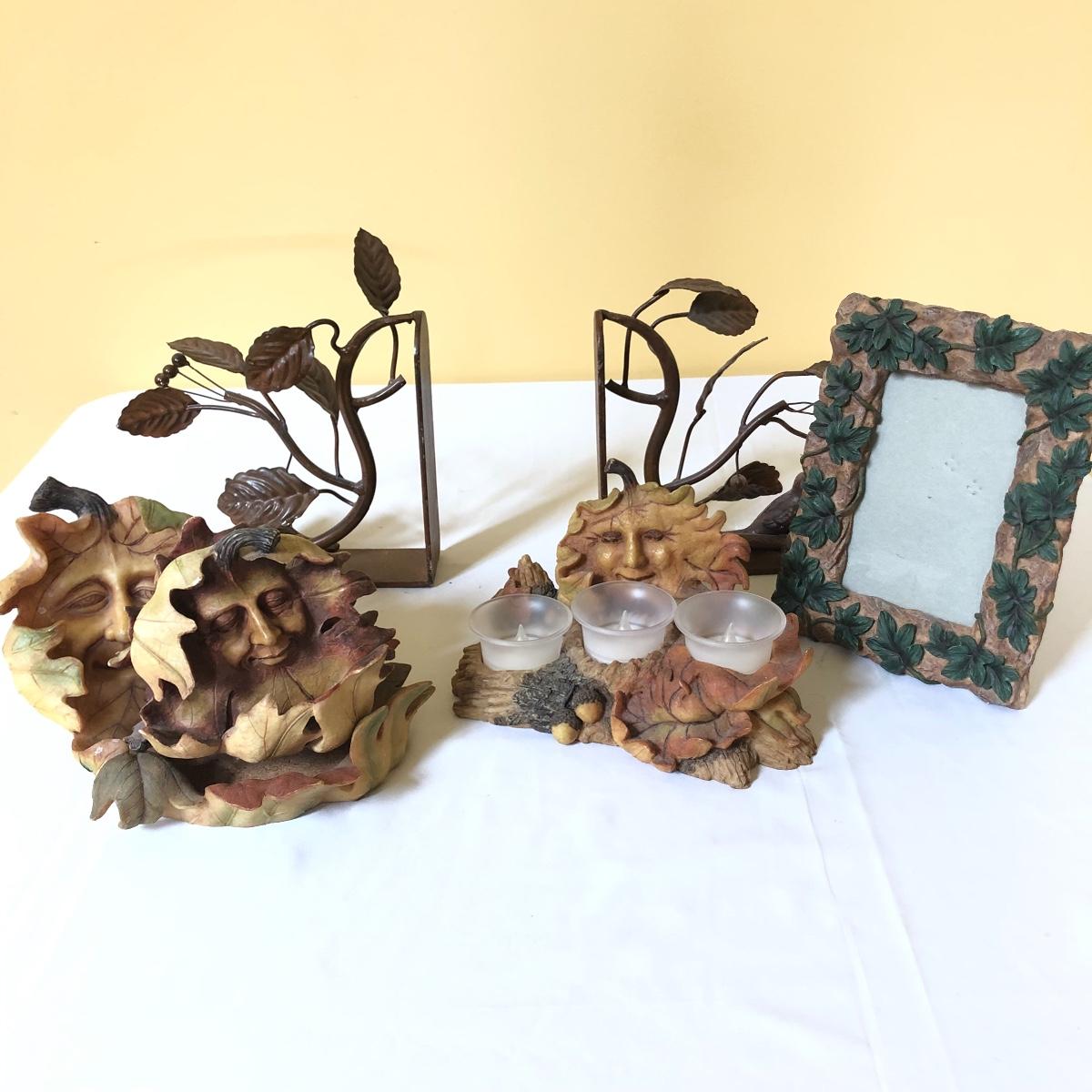 You guessed it! This lot is all about leaves and their beauty. From the two ceramic wind chimes to the ceramic lamp and small canister, all are leaf adorned. Not to mention the candle holder and it’s accompanying piece, the decorative pillow, a large basket, small ceramic photo frame, metal stand with built in basket, large poster and a gorgeous pair of metal bookends, this assortment has been purposely selected to convert your space so beautifully you will never want to ahem“🦆.Leave!