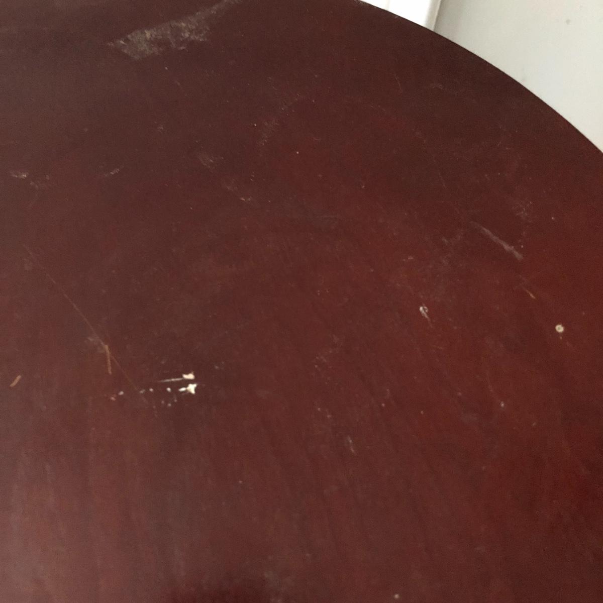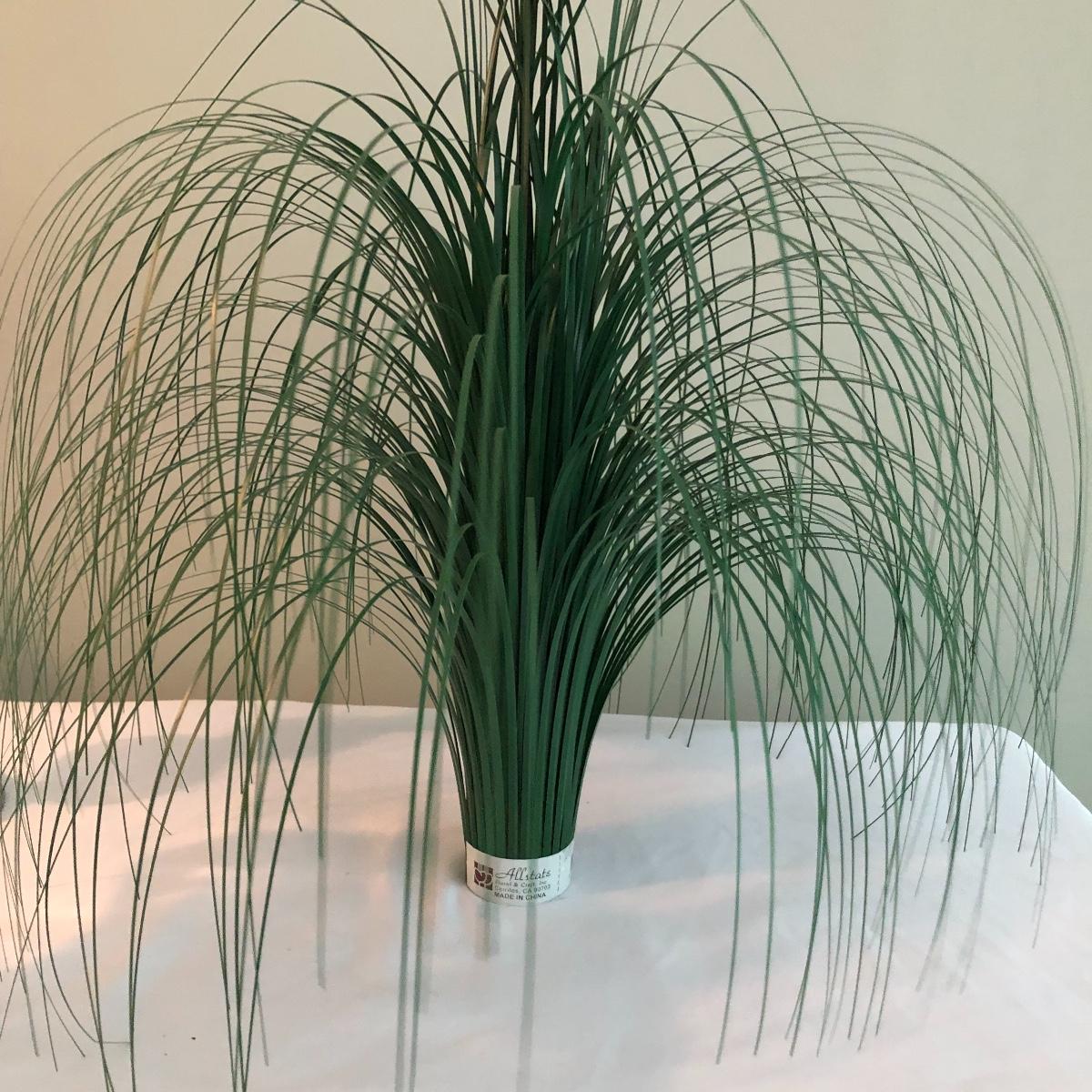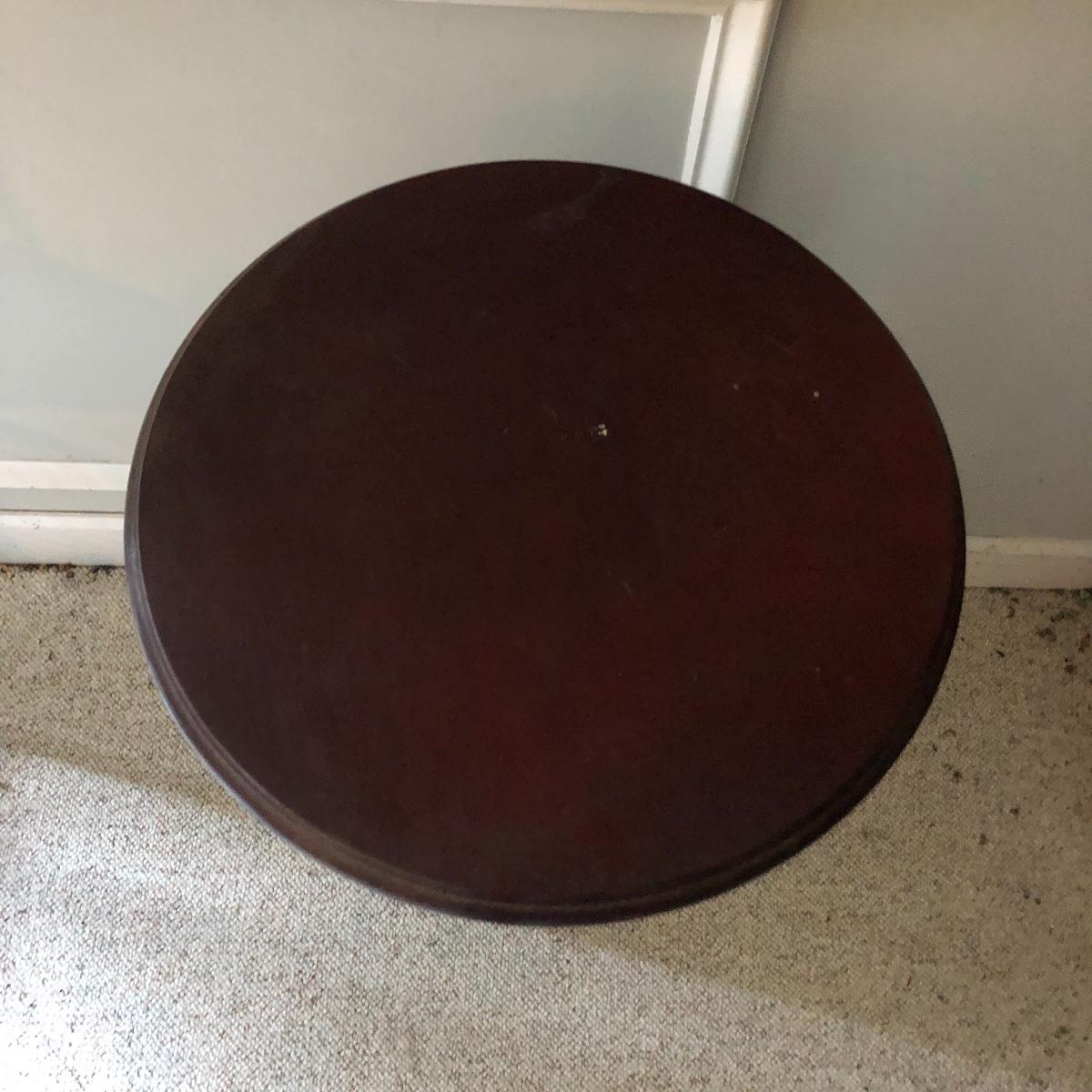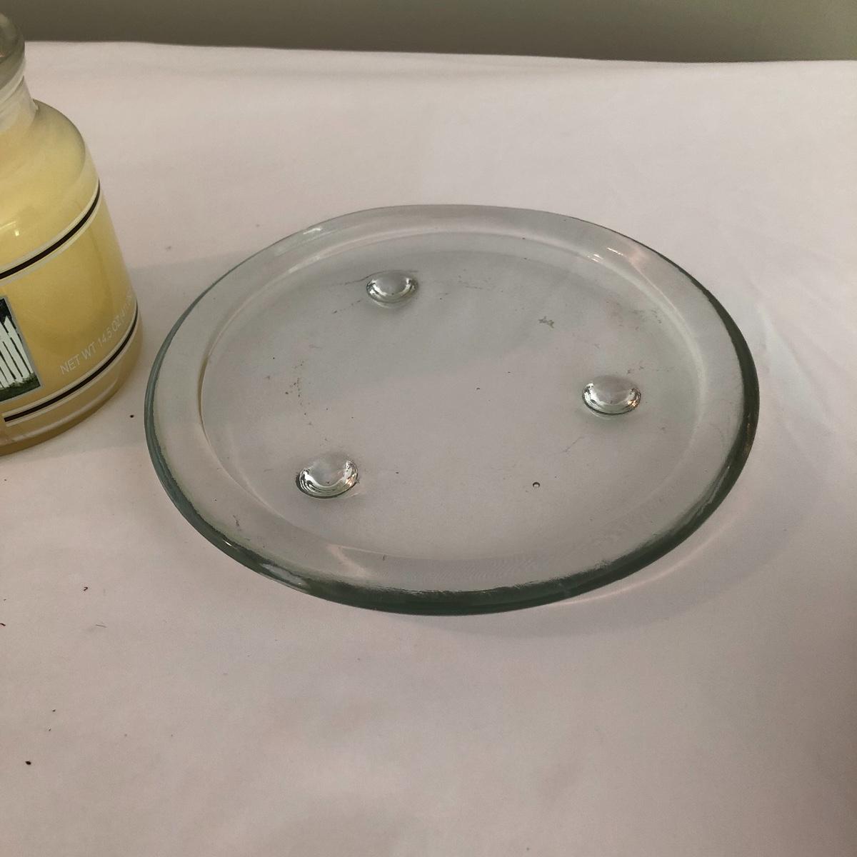 This elegant end table is ideal for displaying a special plant, vase of flowers or a lamp; it’s a lightweight piece that feels like it may be MDF, it does have a small blemish on the table surface. Also included is a glass basket style vase that currently is home to a faux grass plant, a couple of candles, small ceramic plant pot and a precious glass and metal candle holder that looks like a lamp and has a small ivory shade.