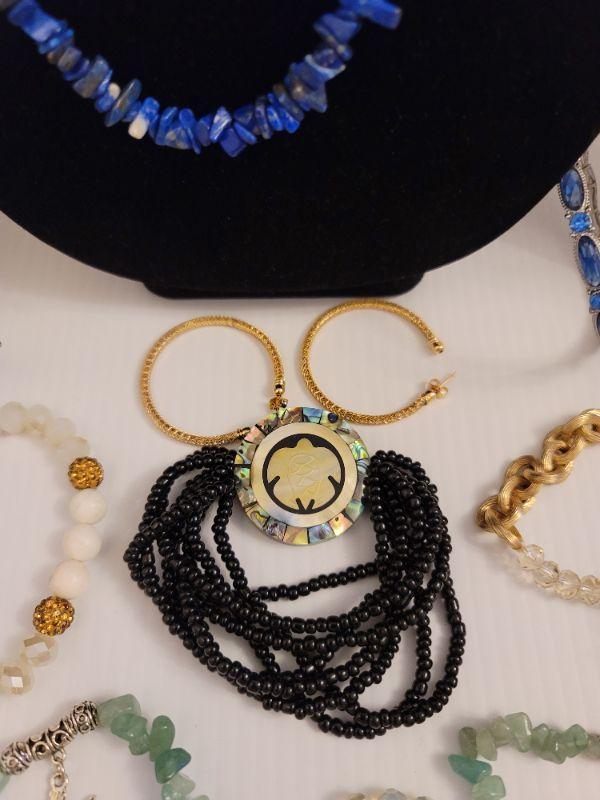 Fine quality costume jewelry to include Lapis Lazuli necklace and assorted jade