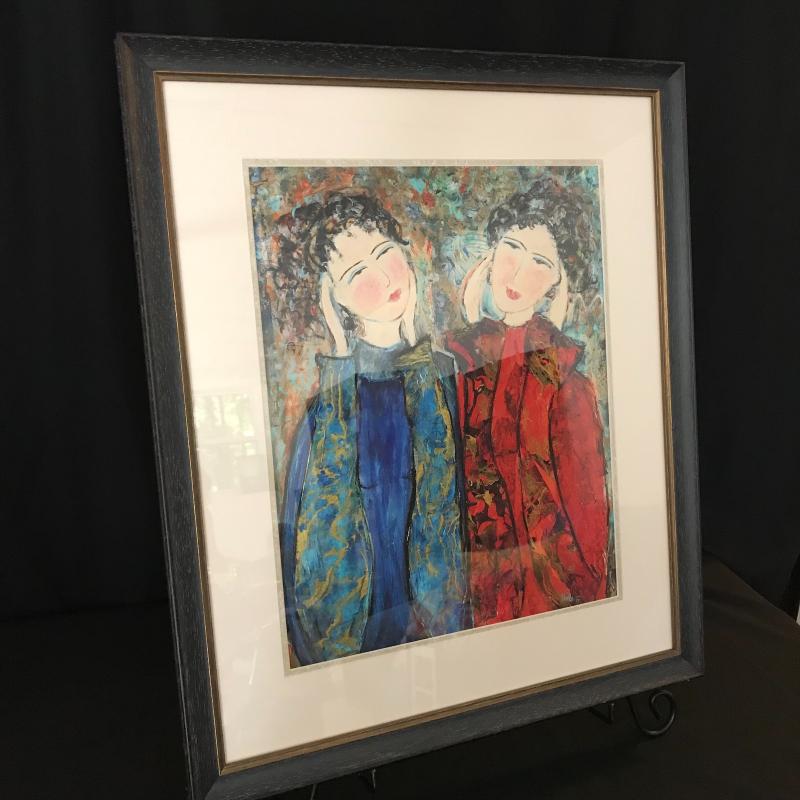This framed and matted piece appears to be a print. Signature not legible. Gorgeous colors will brighten any wall. Approx. 27” x 23”. Shipping available or local pickup in Arden, NC. Please contact UPS for rates as shipping artwork can be expensive.