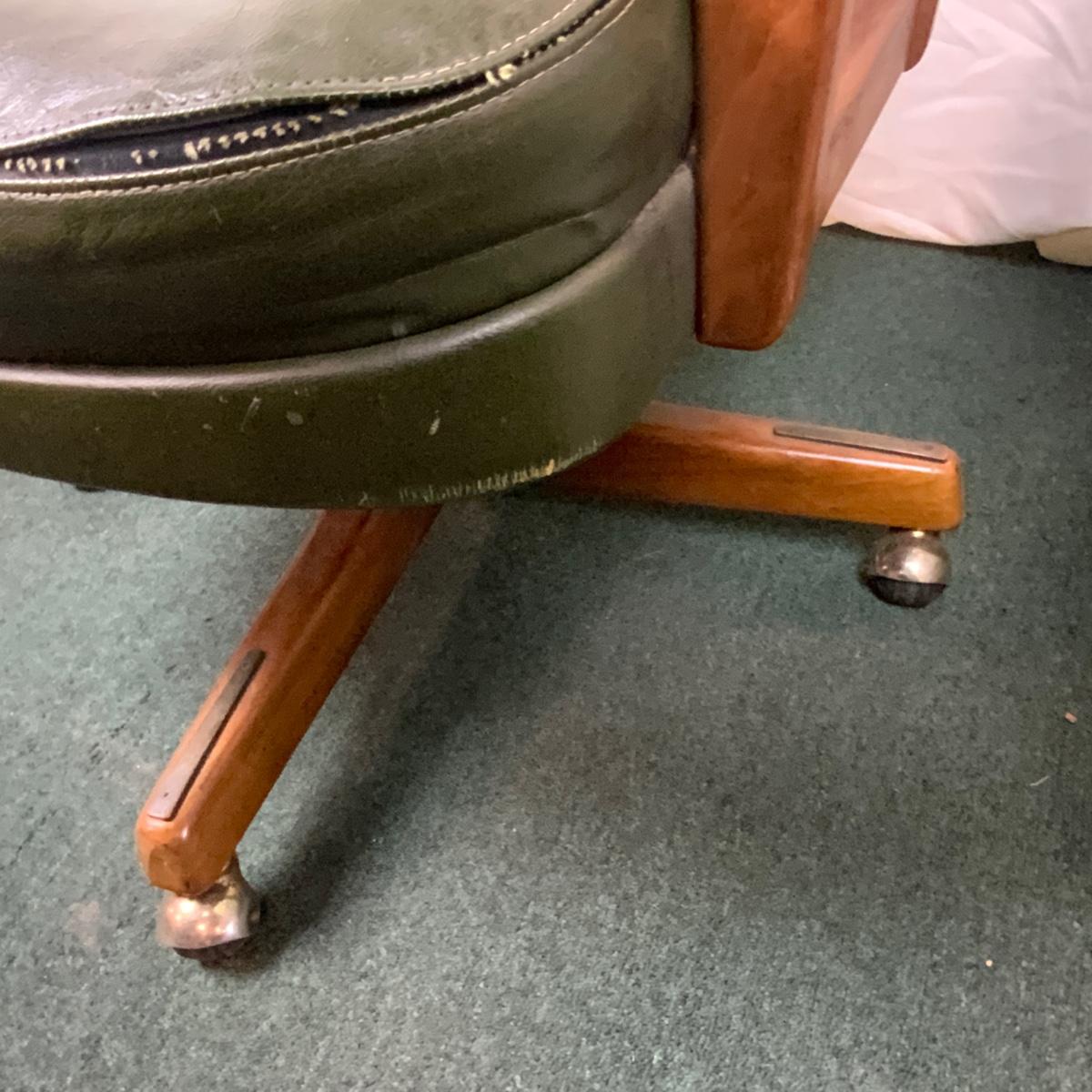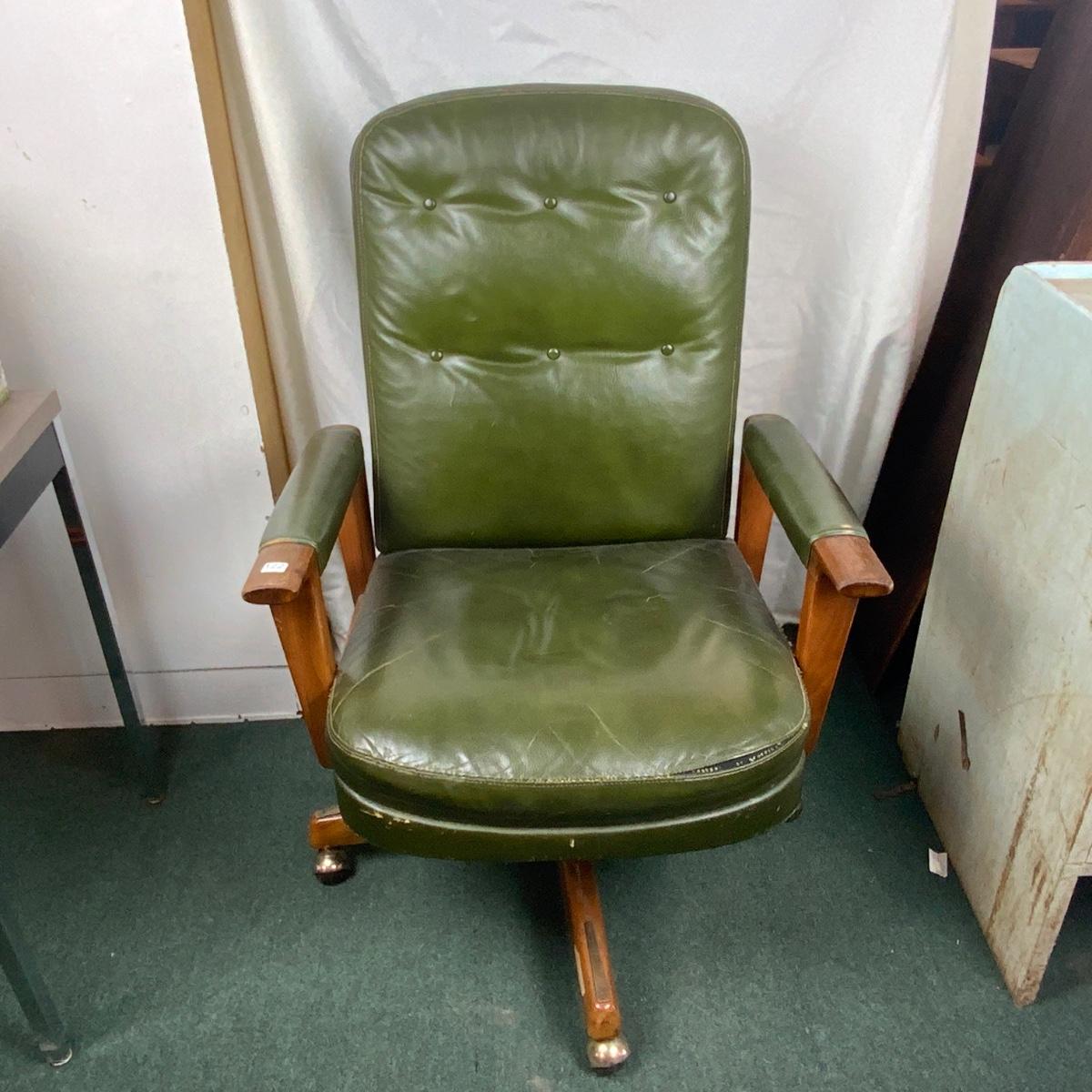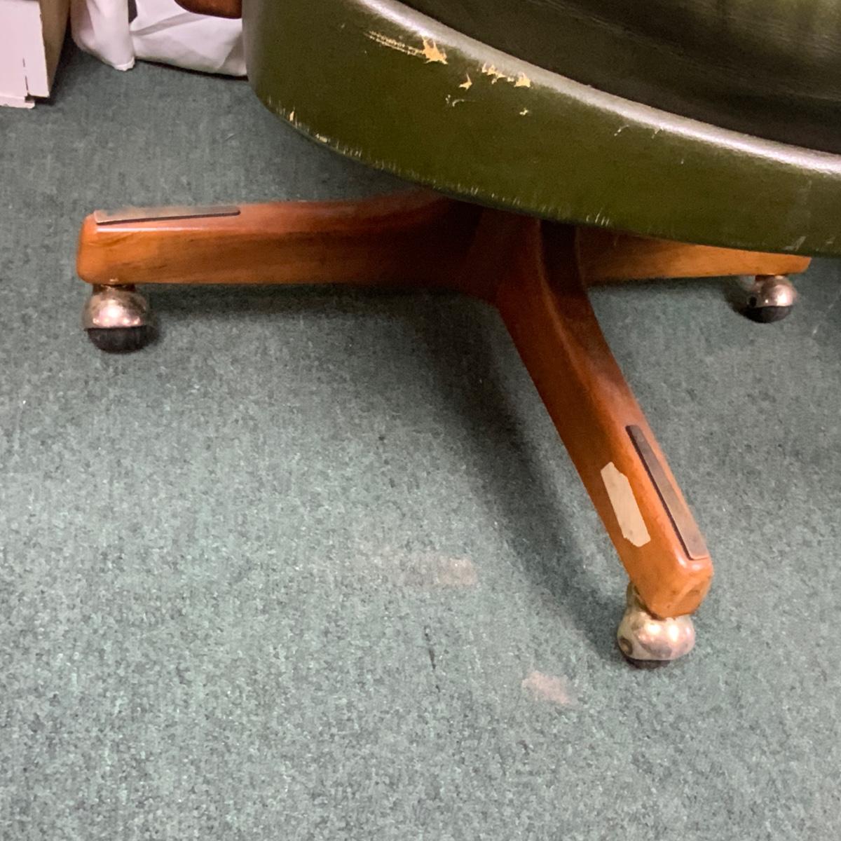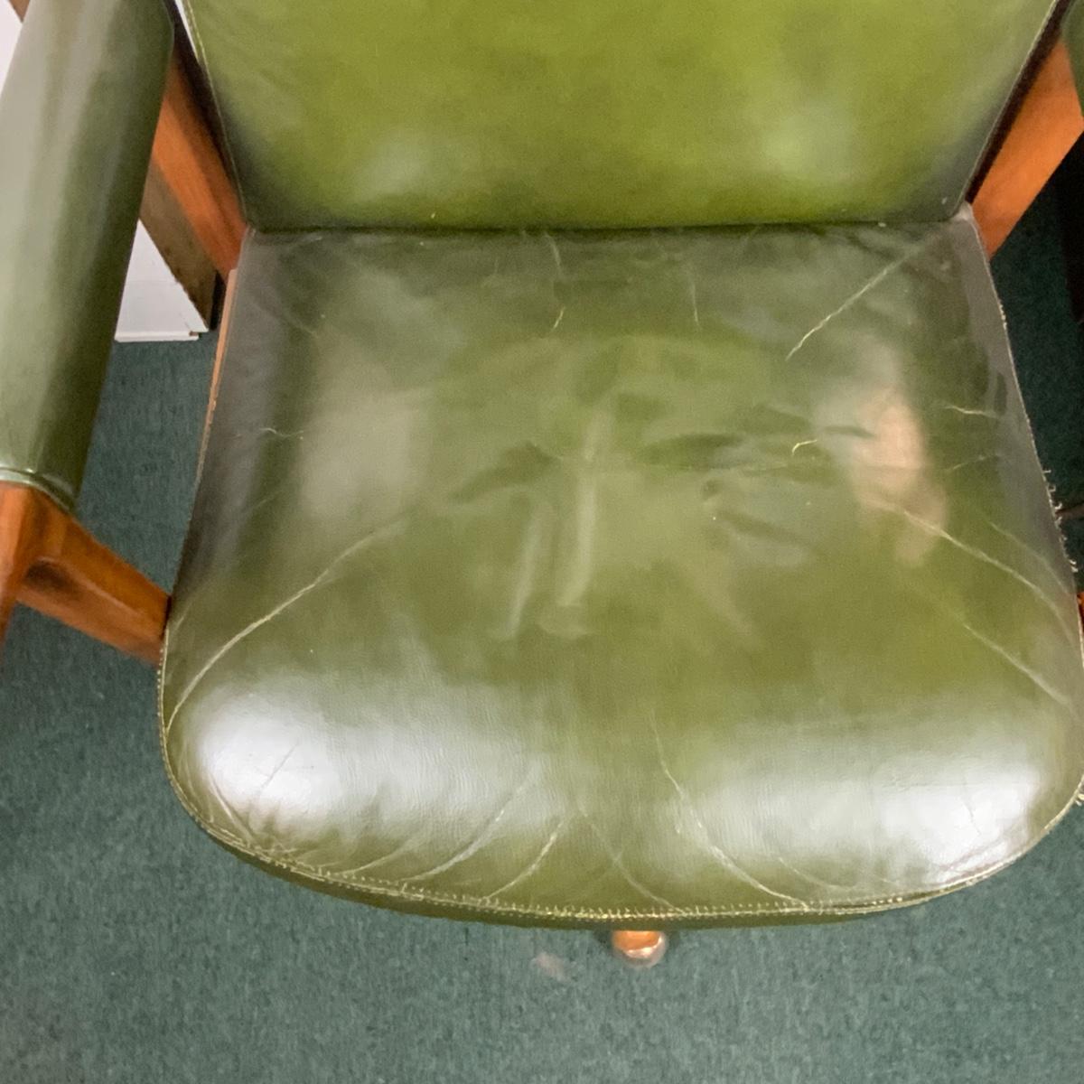 Mid-Century Green Leather Office Chair. Jane Holloway Approved. Seat has stitching that needs to be repaired.