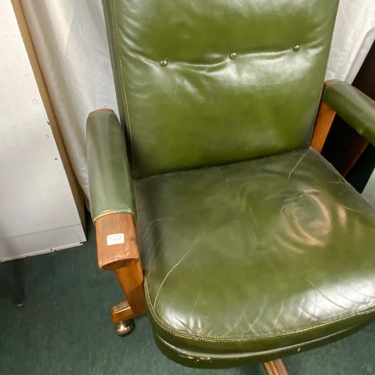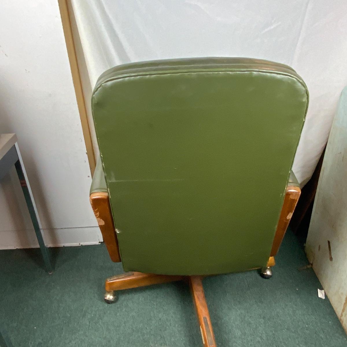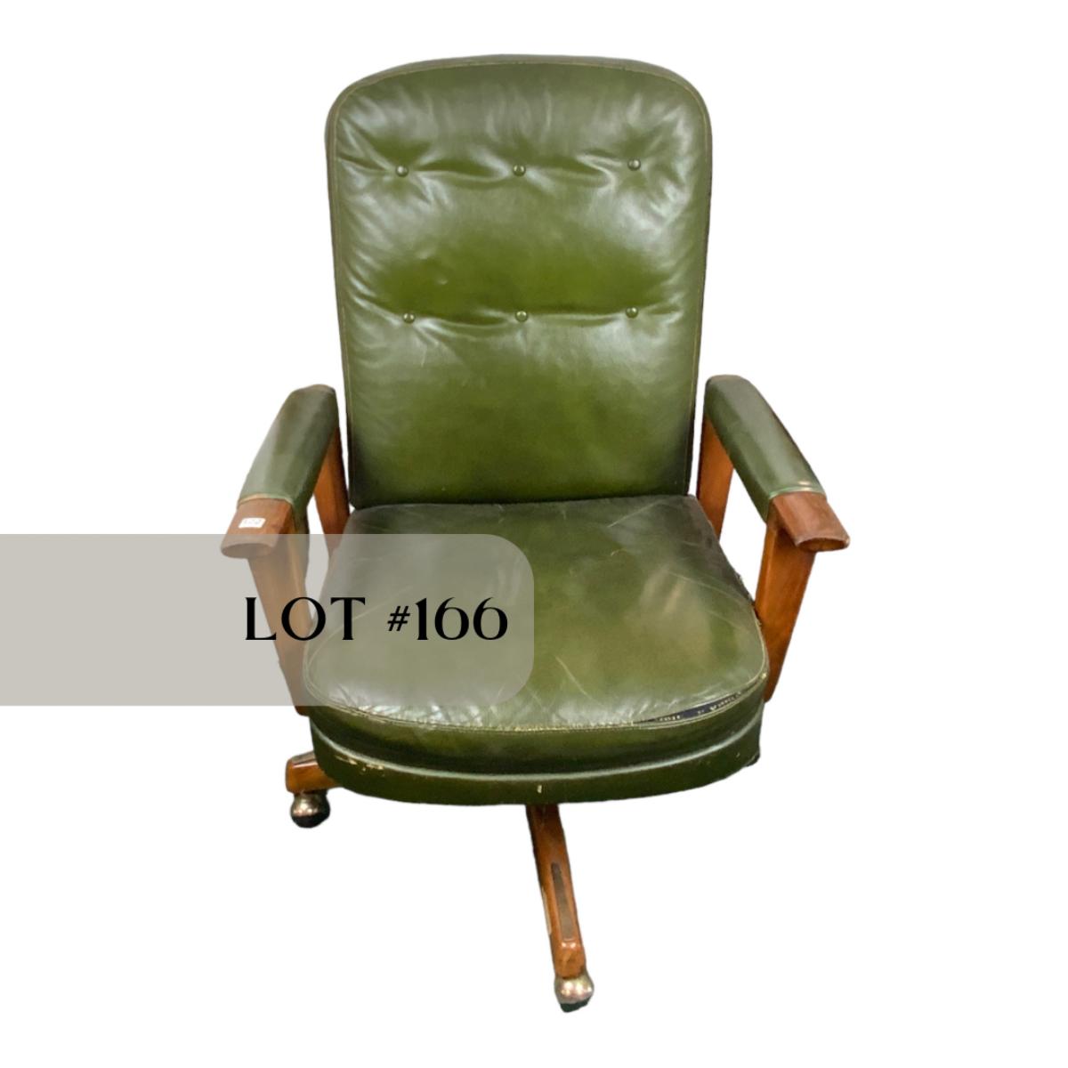 Mid-Century Green Leather Office Chair. Jane Holloway Approved. Seat has stitching that needs to be repaired.