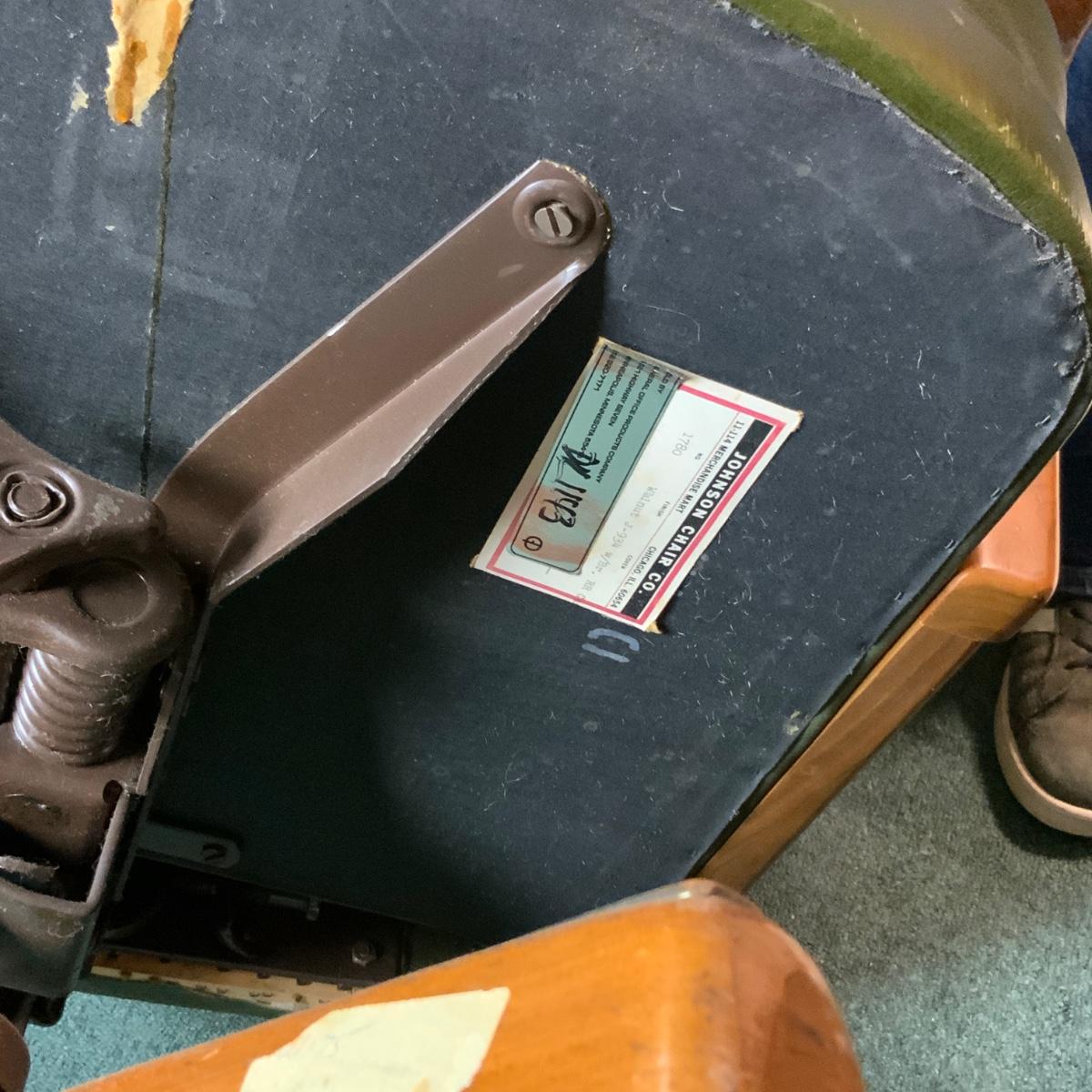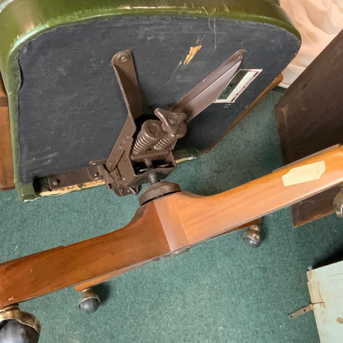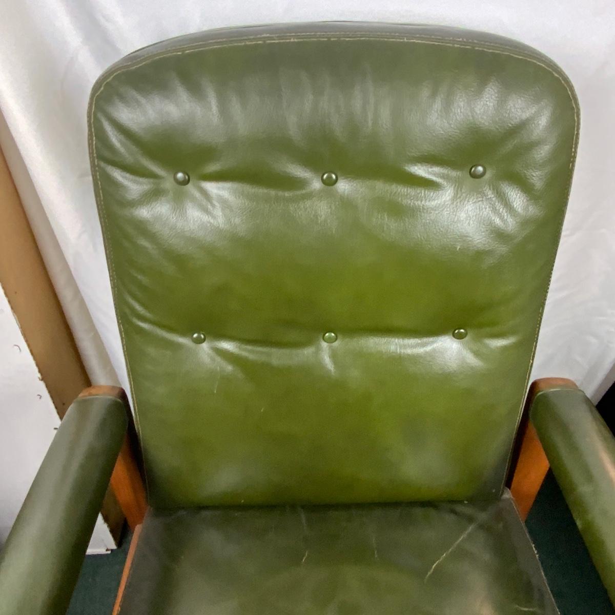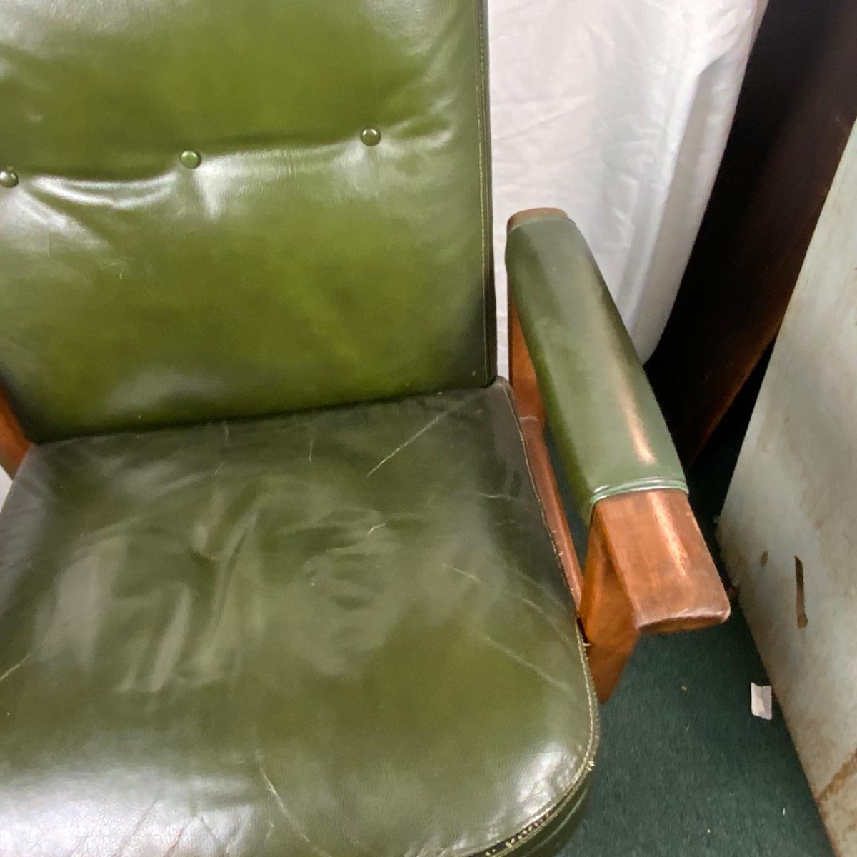 Mid-Century Green Leather Office Chair. Jane Holloway Approved. Seat has stitching that needs to be repaired.