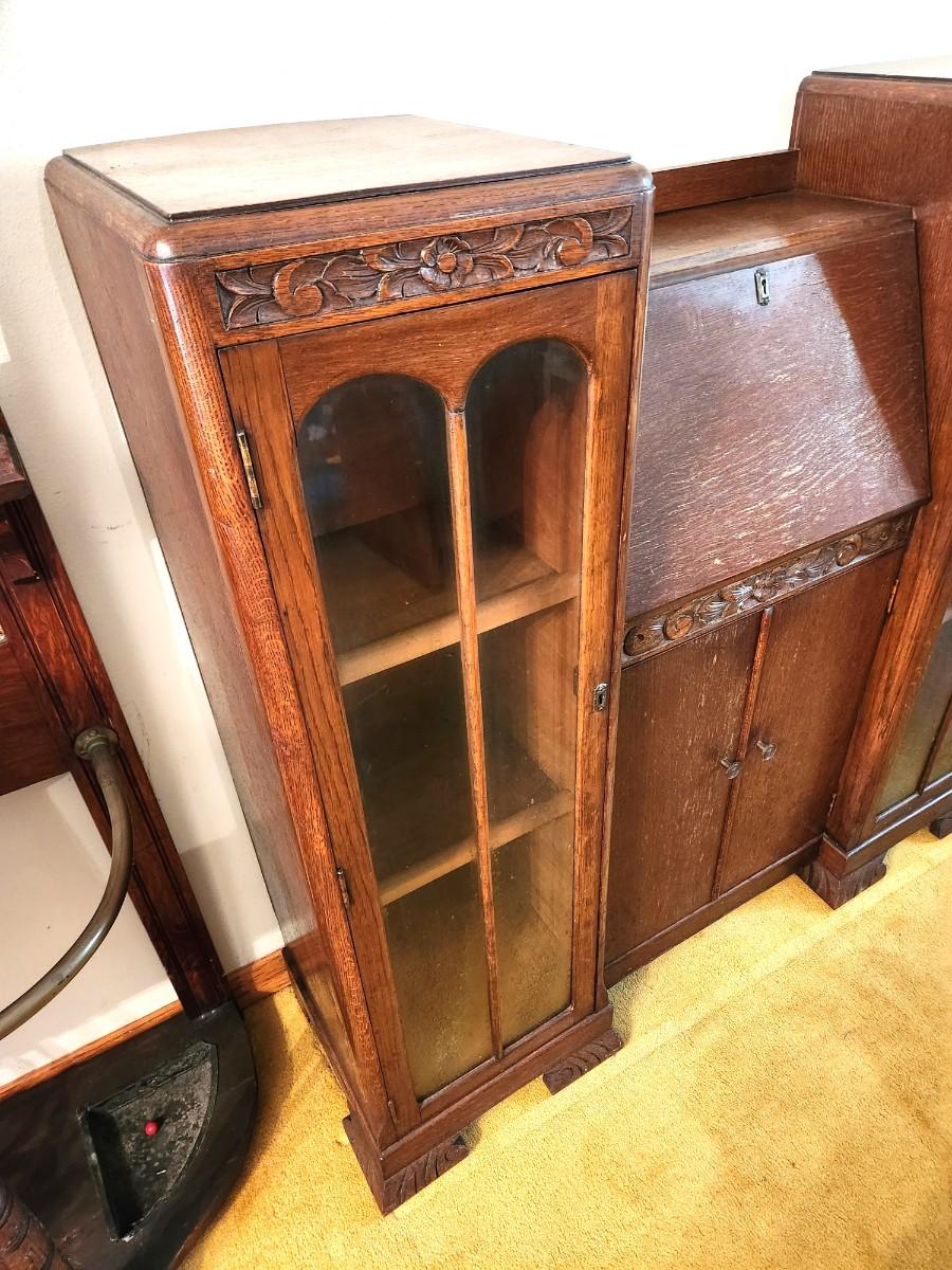 Lot #166 Oak Art Nouveau Drop down desk with Double Bookcase - ca. 1910