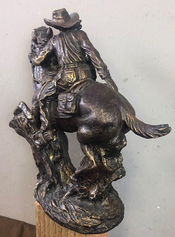 Used - Great Condition - No signature 12" Tall - much like a Charles Russel Sculpture