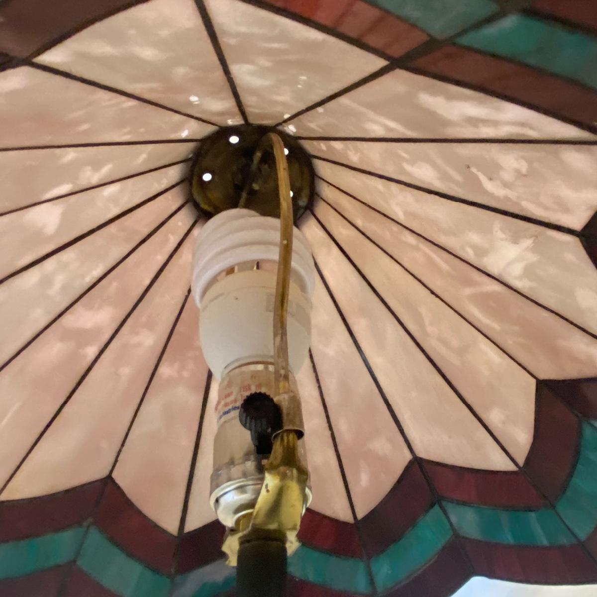 Lot 166 - Signed Floral Art with Stained Glass Lamp