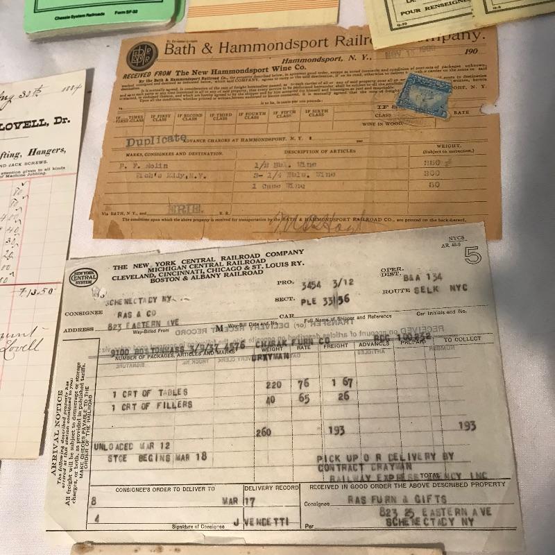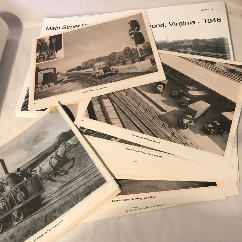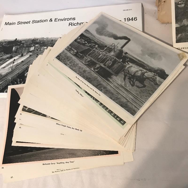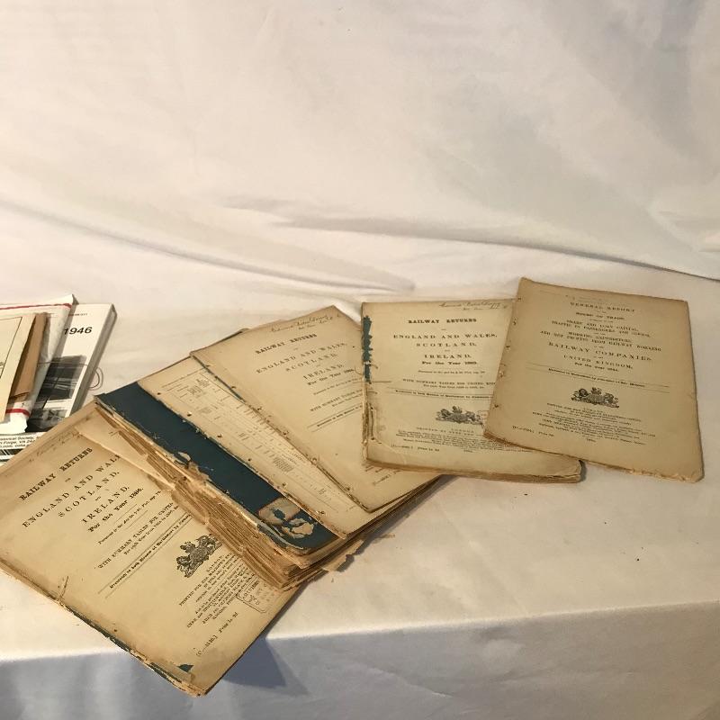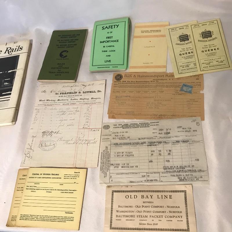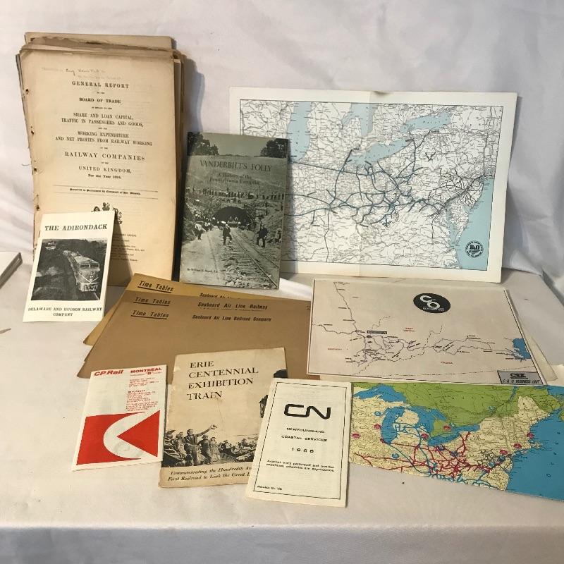 Vintage and antique train memorabilia for the avid train lover. Lot features plenty of antique tickets, schedules and maps. Also a collection of vintage train information photos, numbered. There is also a collection of Railway Returns from the late 1800s. These booklets are worn and some pages are falling apart, but they appear to still have some life left in them. Lot also includes plenty of VHS and reading material, a rolled 38” x 12” signed and numbered print (see small Blemish in photos). Shipping available.