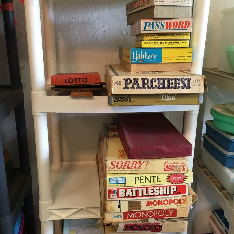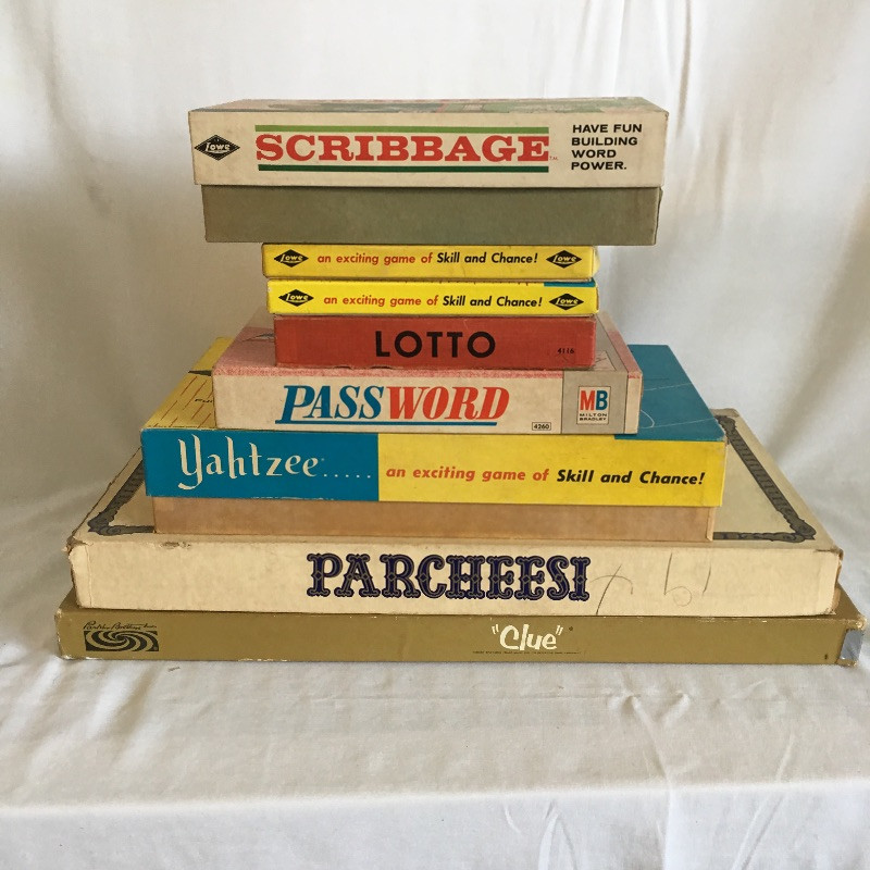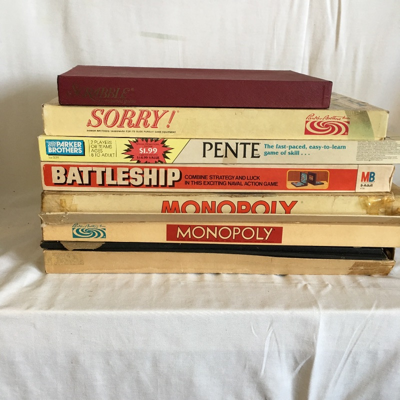 Collection of vintage board games that includes Monopoly, Sorry, Parcheesi, Yahtzee and more. Remember your childhood with this great selection of board games.