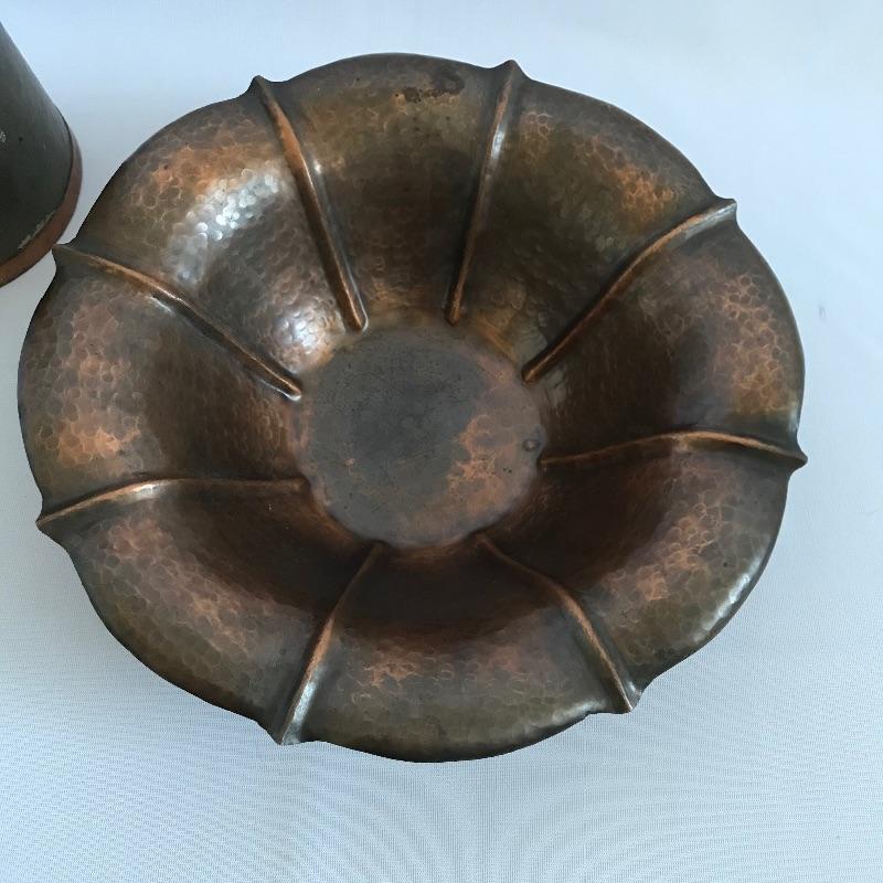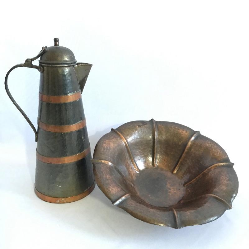 Lot 166 - Vintage Hammered Copper Bowl and Metal Pitcher