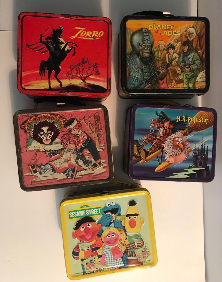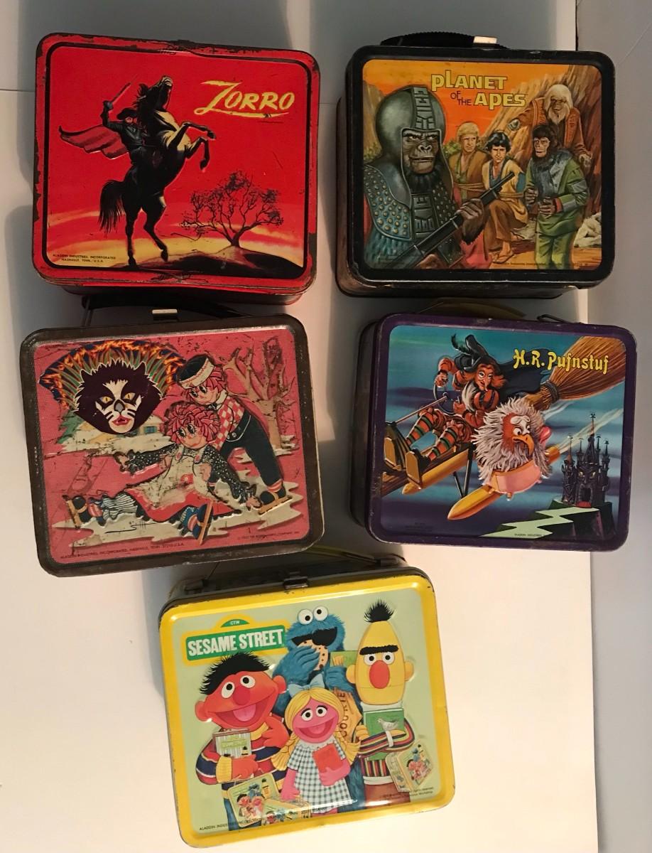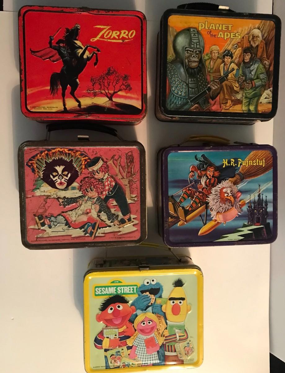 Lot 166: Vintage Lunchboxes - Planet of the Apes, H.R. Pufnstuf, Sesame Street, Zoro and Raggedy Ann