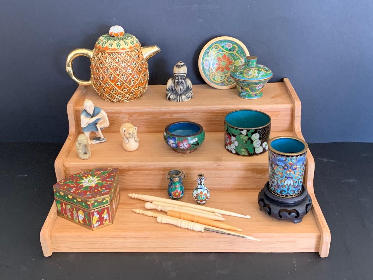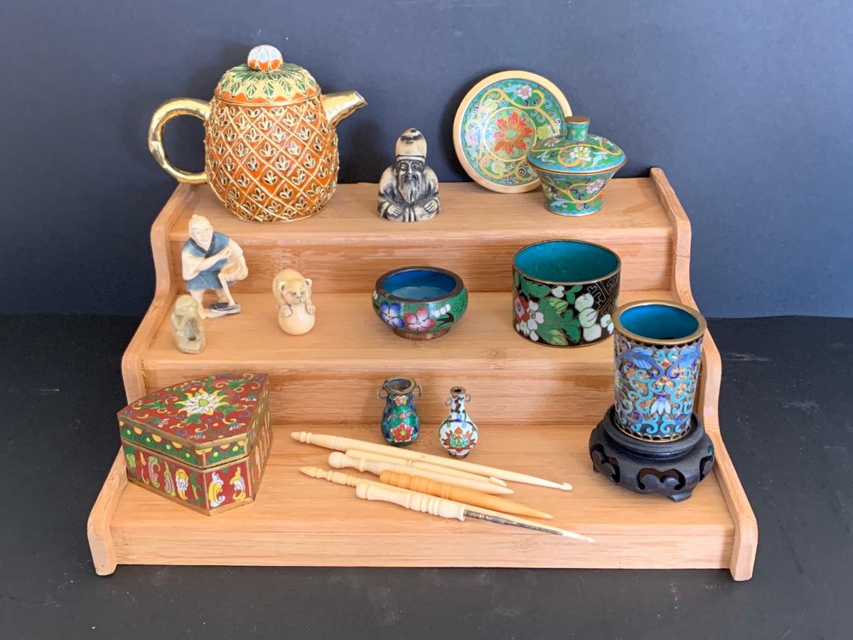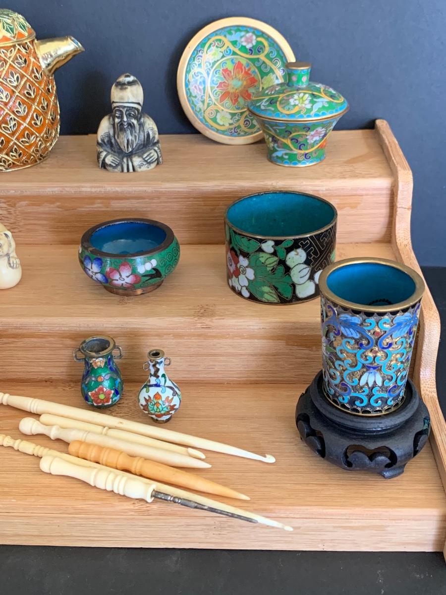 Lot 166R: Vintage Handmade Cloisonne,Miniature Enamel Ware, Carved Miniatures & More
