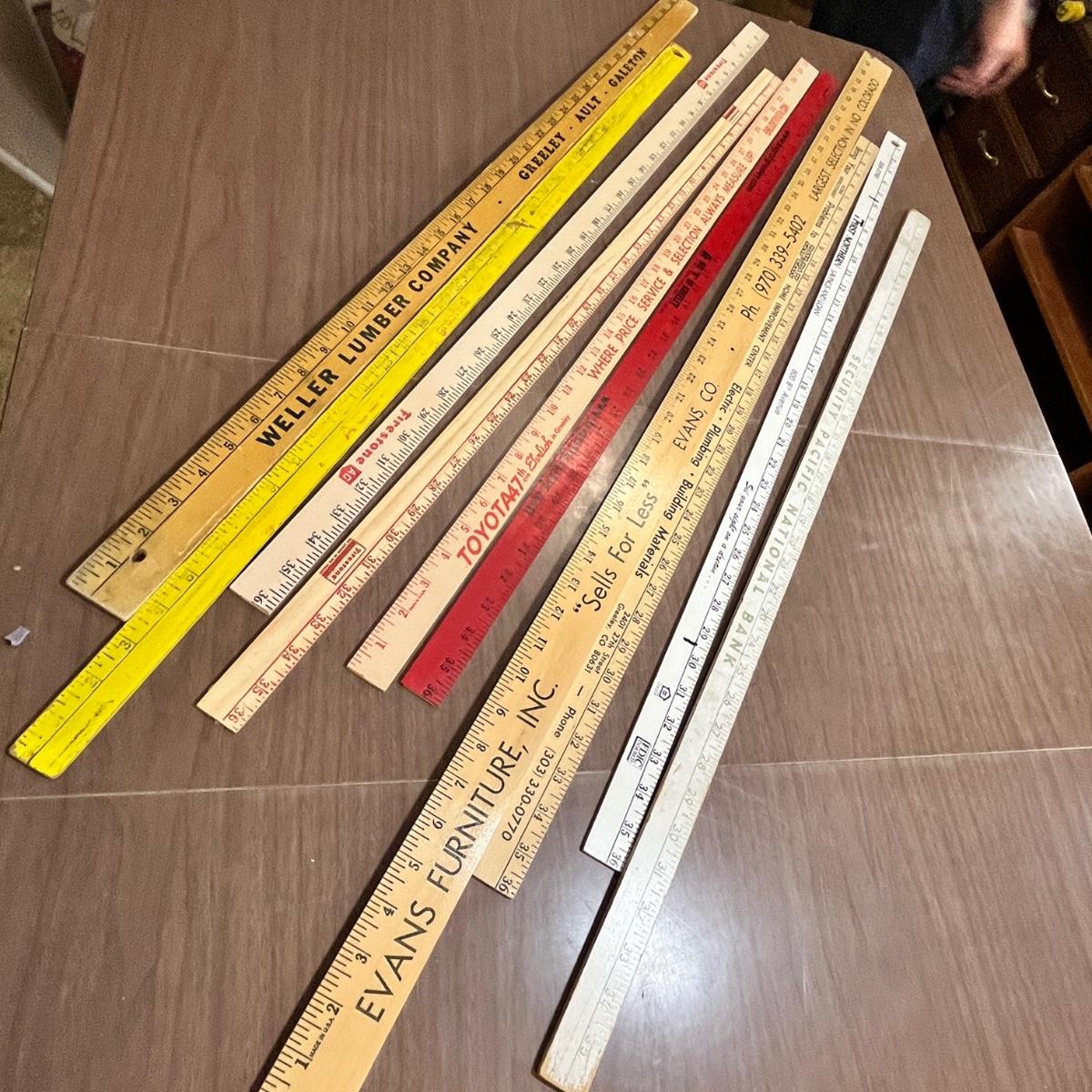 8. Sizes are approximate, you can estimate as our lot number signs are 3.5" long. Also we use an 18" & 36" measuring stick.  We try on certain things to do actual measurements. No guarantees on actual sizes, we try our best!