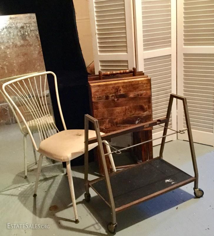 Lots of misc. pieces for your booth or for upcoming projects. Get creative! Large mirror, folding privacy screen, rolling cart, vintage chair and foldable wooden TV trays with stand. See photos. No shipping. Only local pick up in Flat Rock, NC.