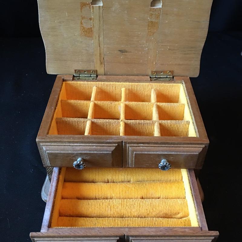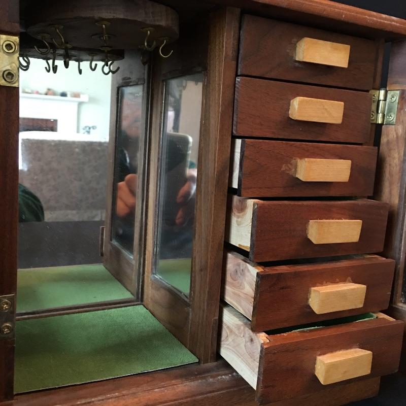 Largest jewelry box measures 5.5” x 11” x 11.5”.