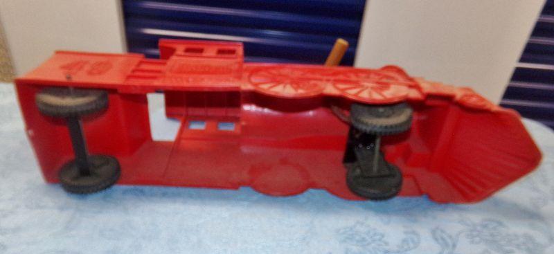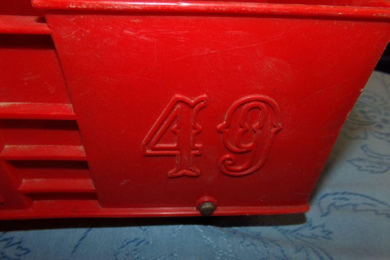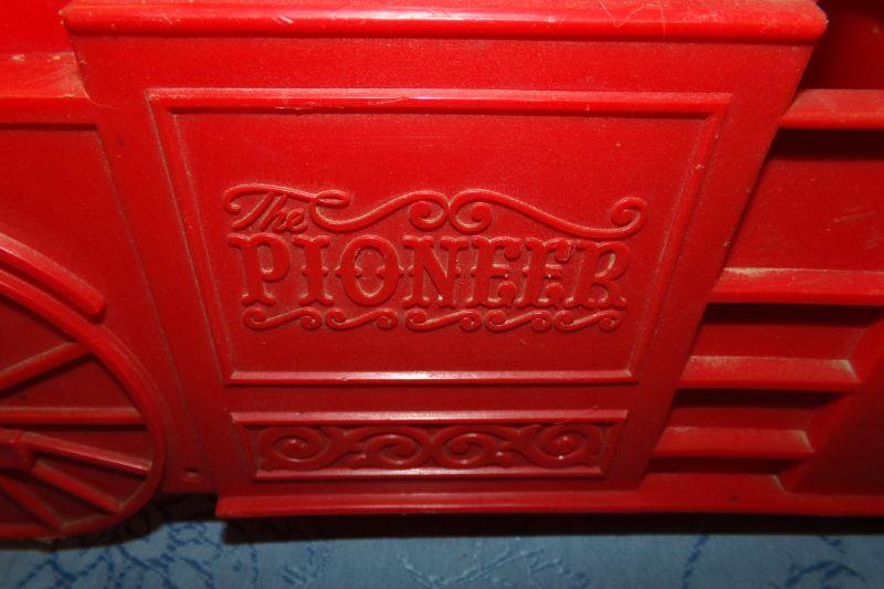 "PIONEER 49" IS THE NAME ON THIS HARD PLASTIC TRAIN WHOS BELL RINGS WHEN RIDDEN