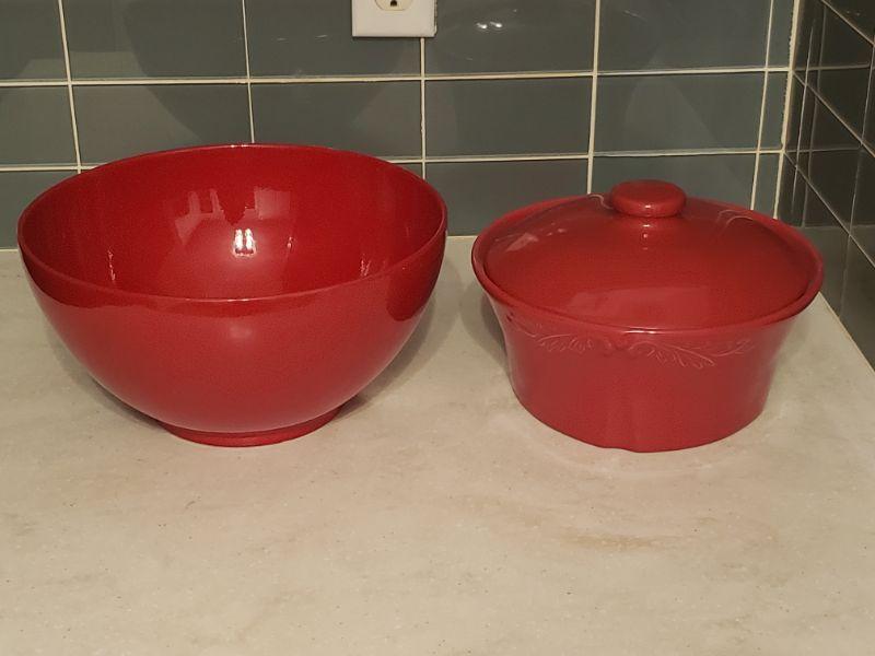 Lot 167: Large Red Bowl & Covered Casserole Dish