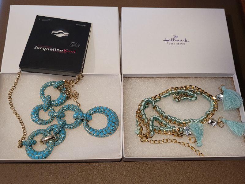 Lot 167: NEW Hallmark Light Blue Tassel Necklace and NEW Turquoise Color Jacqueline Kent Necklace
