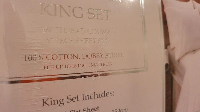 Lot 167: 100% Cotton 4-Piece DOBBY STRIPE King Size Bedroom Set