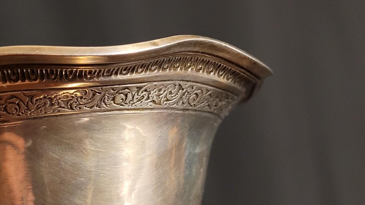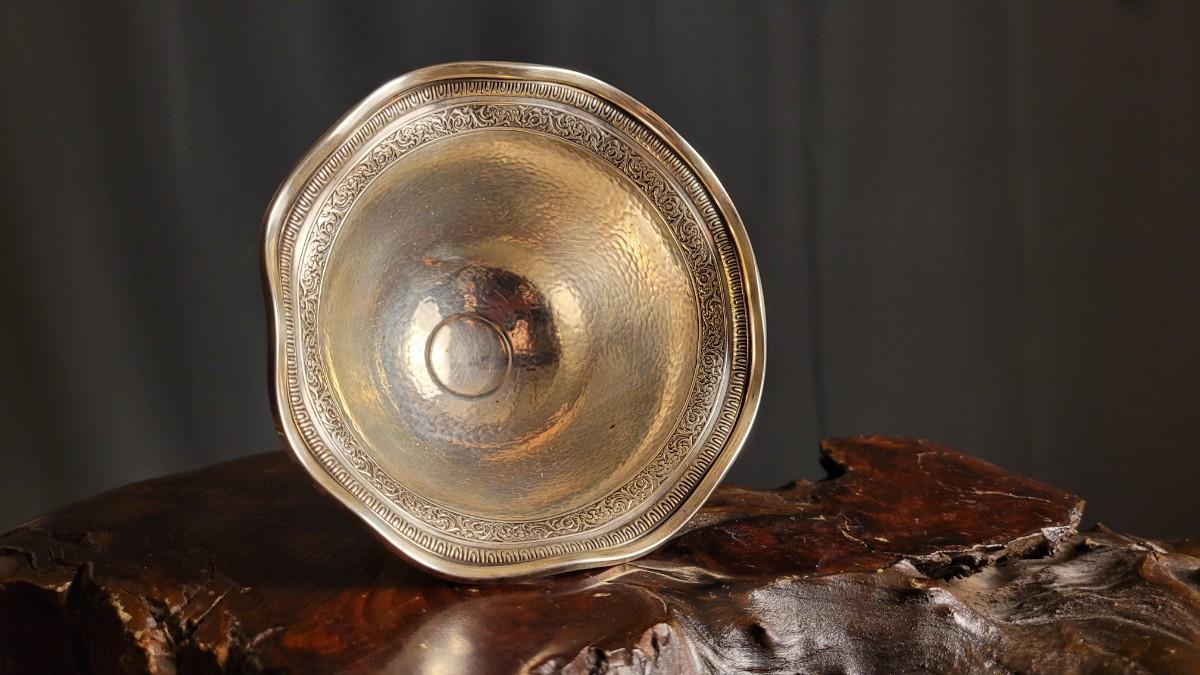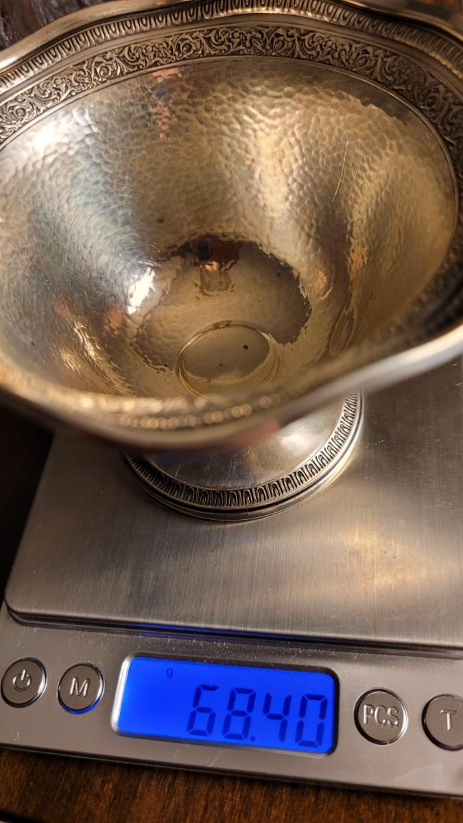 This Vintage Sterling Silver Chased Dish is in excellent condition for age with fine detailing. No defects or obvious dings are observed. Piece weighs just over 68 grams total. 4.25" Wide x 3" Tall.