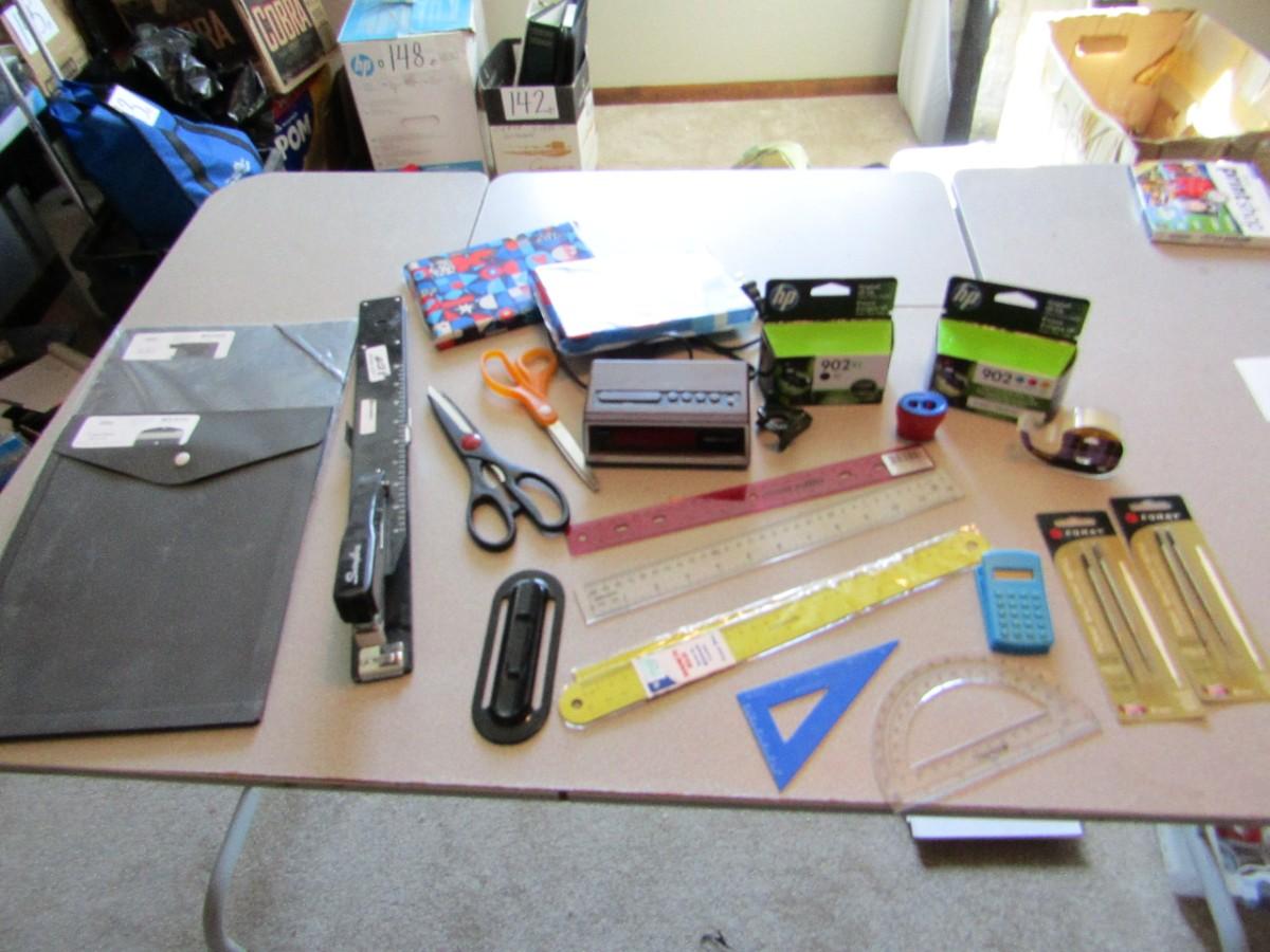 LOT 167 HP PRINTER TONER, OFFICE SUPPLIES, ALARM CLOCK RADIO & 12" STAPLER