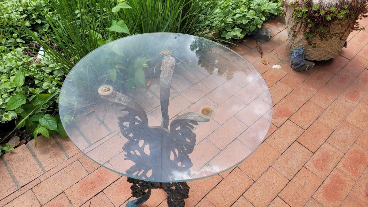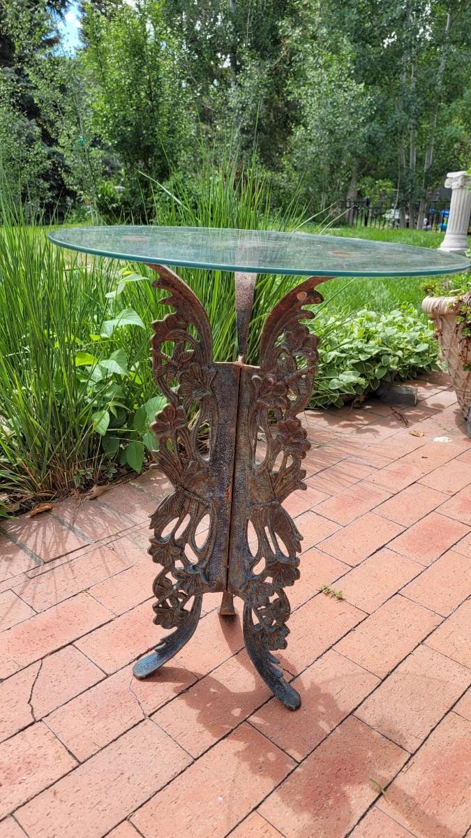 Lot 167: Metal Dragonfly & Flowers Base with Glass Top