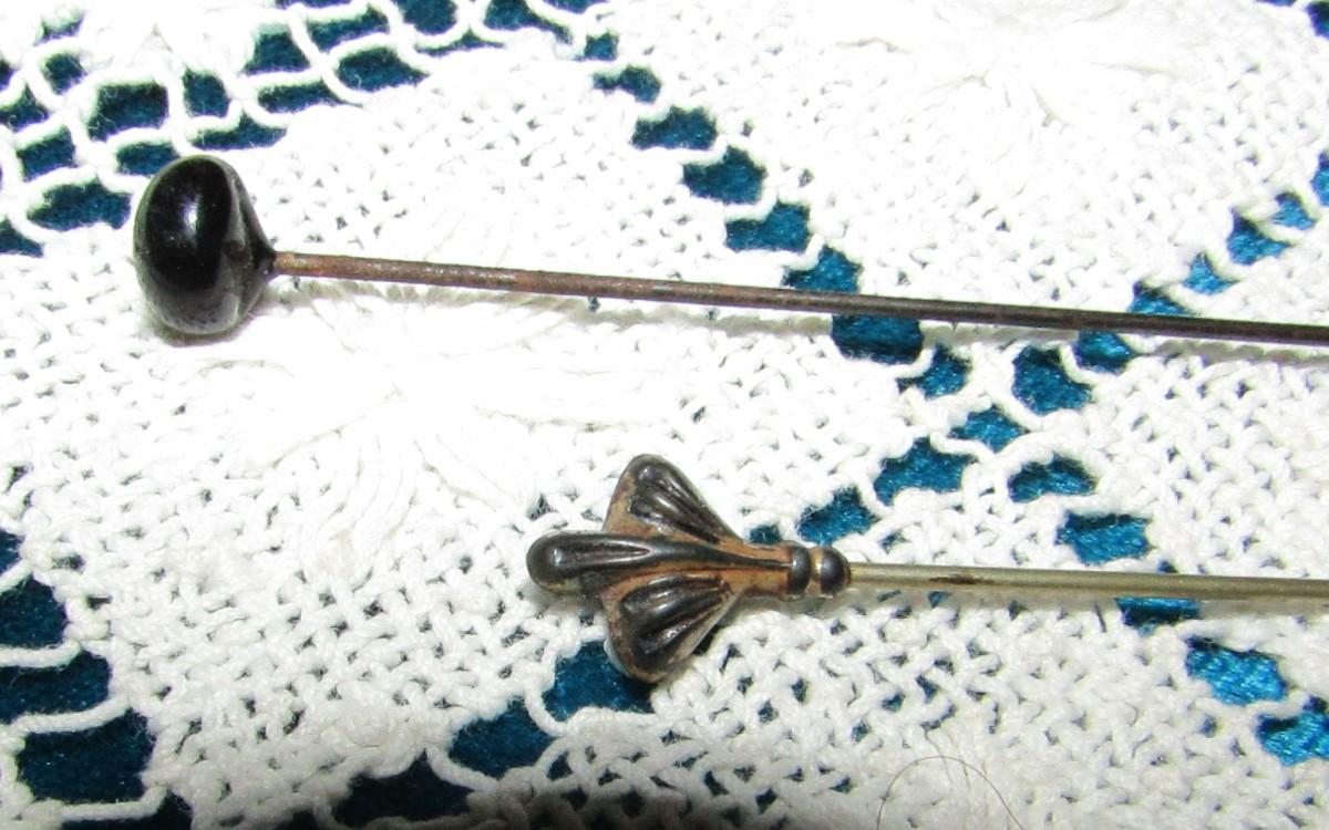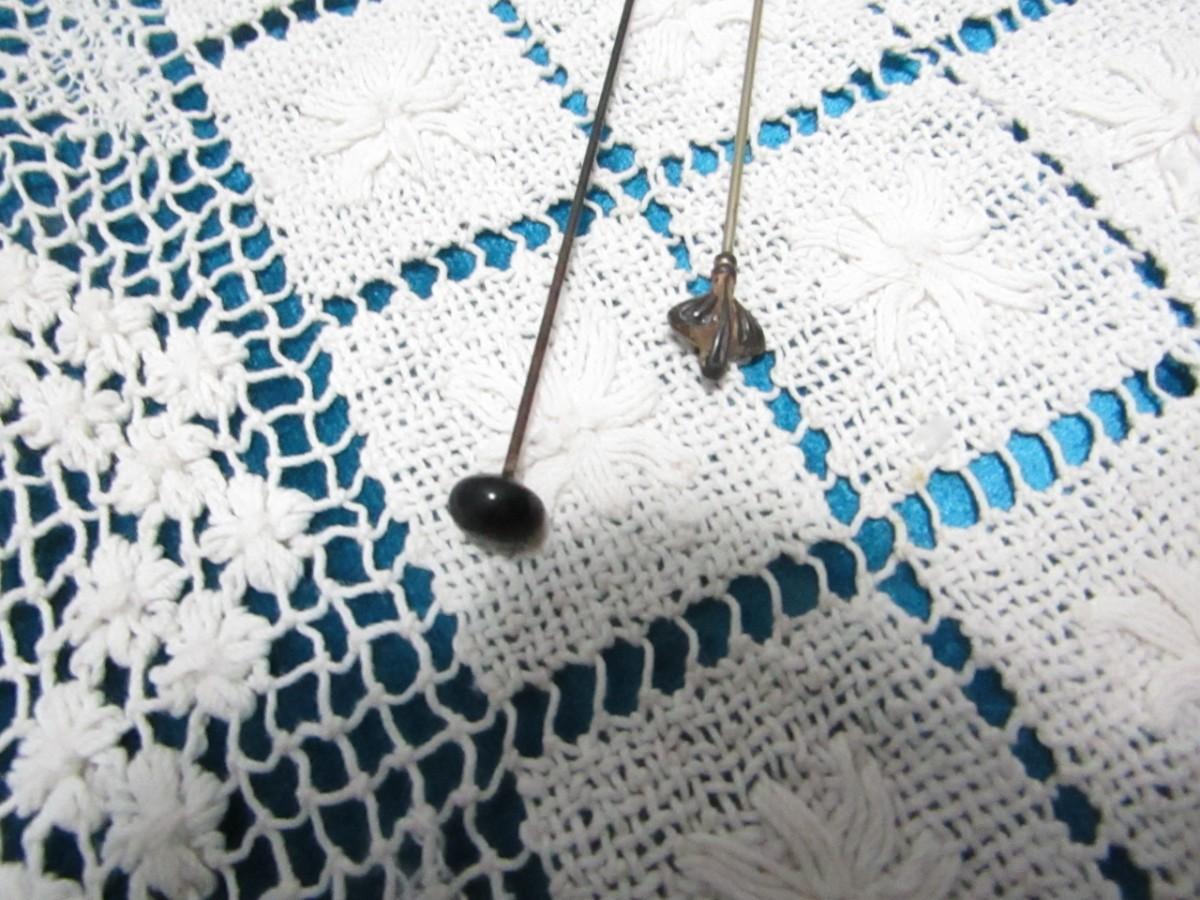 THE BLACK GLASS PIN IS APPROX 10" LONG THE OTHER PIN IS METAL