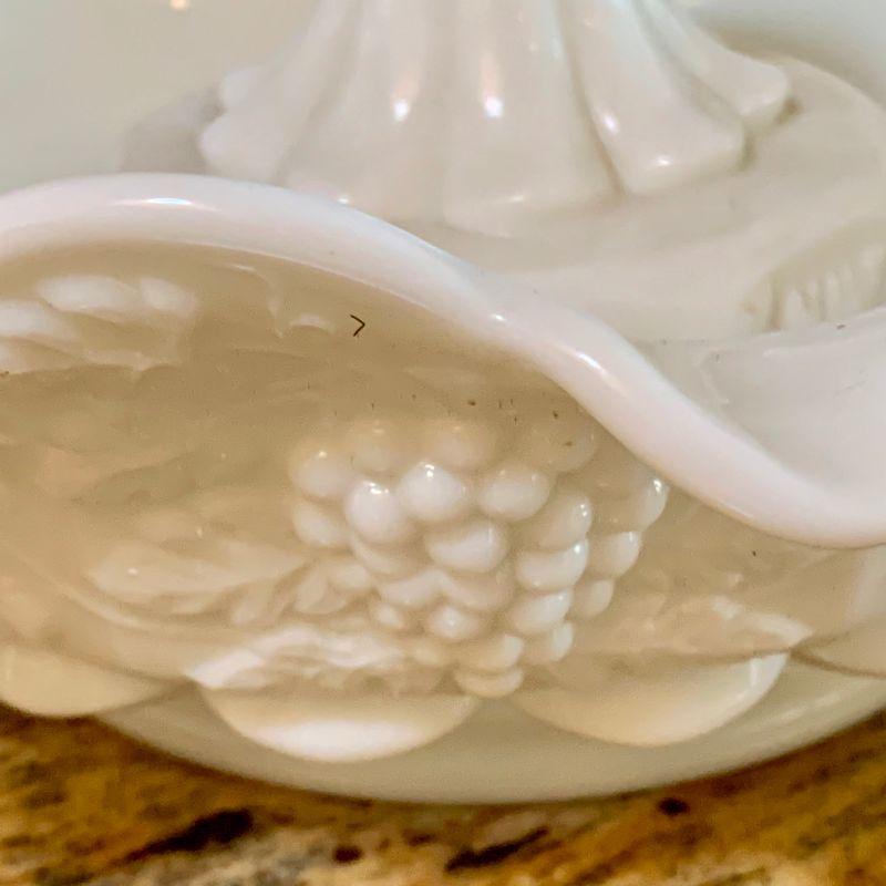 LOT 167 ANTIQUE MILK GLASS SET BOWL & CANDLE HOLDERS GRAPE PATTERN