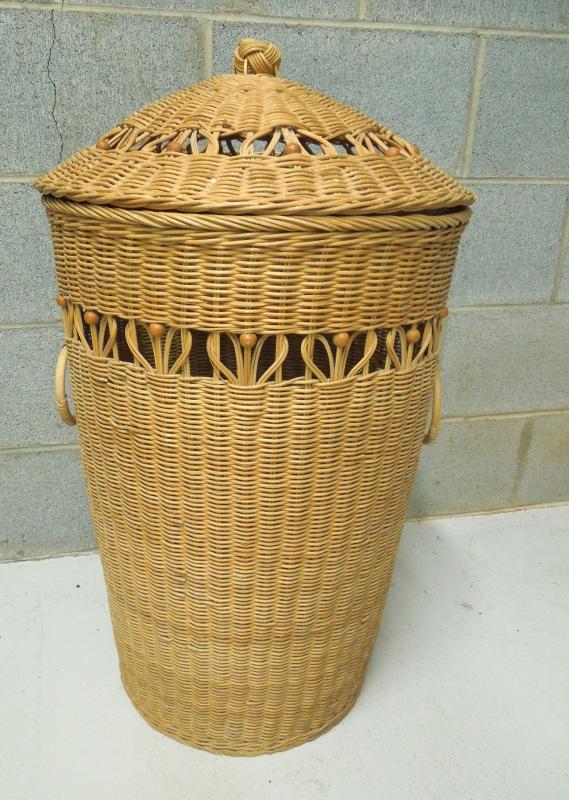Lot 167: Beaded Rattan Wicker Laundry Basket With Lid