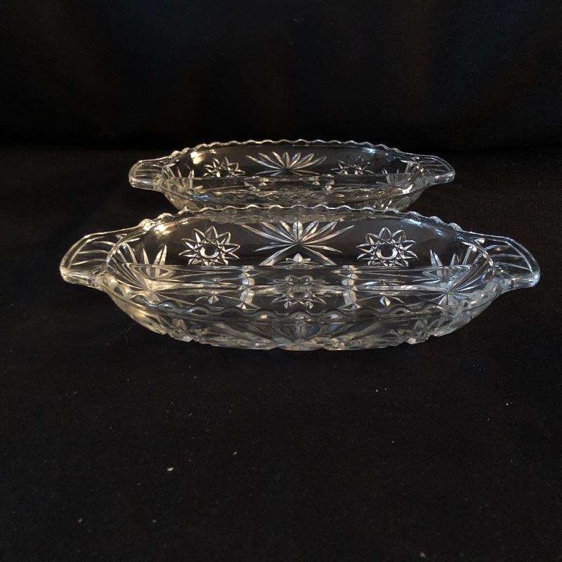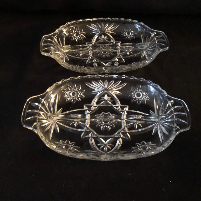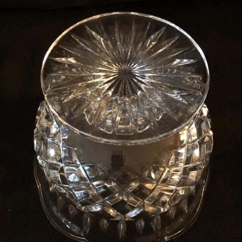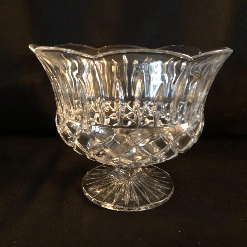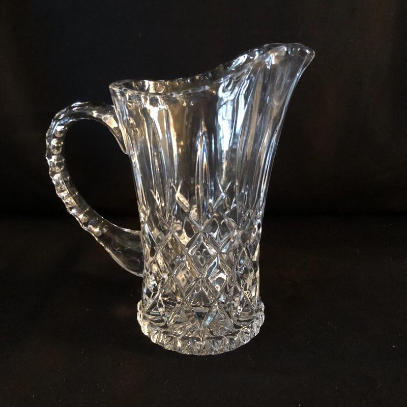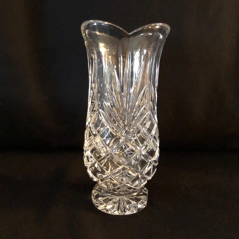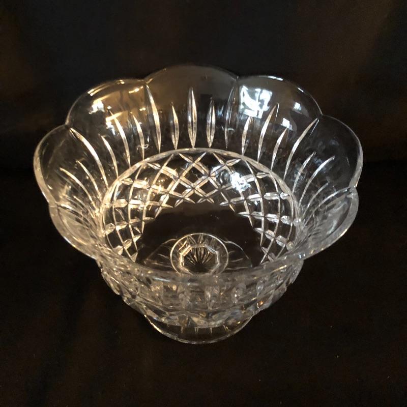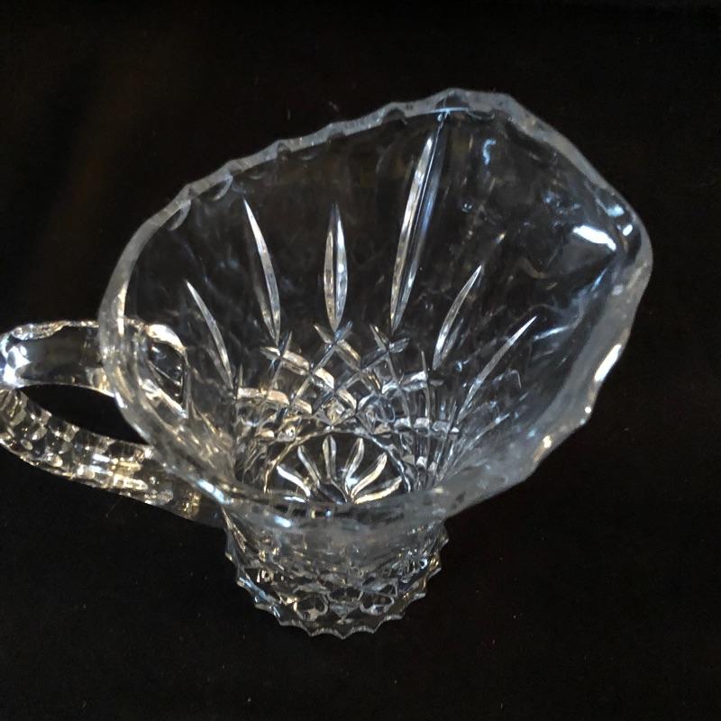 A dazzling array of cut and formed glass. Lot includes eleven cups and eleven glasses, pitcher, vase, footed bowl, two dishes, lidded bowl and bowl. Footed bowl measures 10”D x 8.5”.