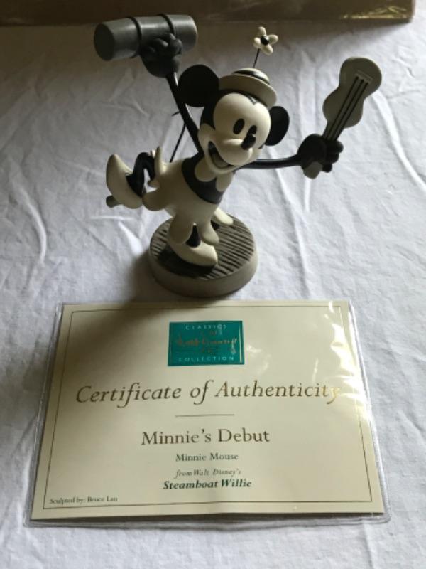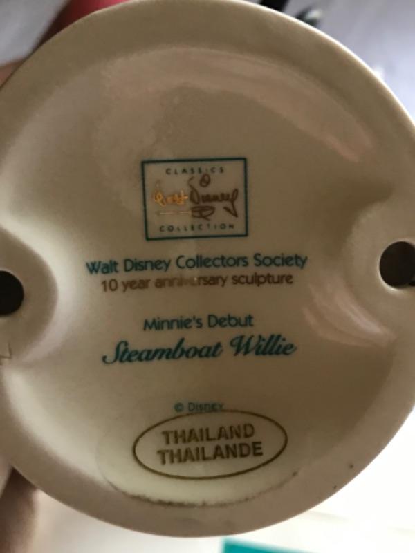 Disney Collectors Society 10 year anniversary “Minnie’s Debut” from Steamboat Willie porcelain sculpture. Measures 4” tall. Sculpted by Bruce Lau. Comes with certificate of authenticity