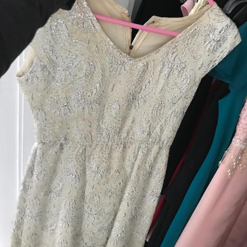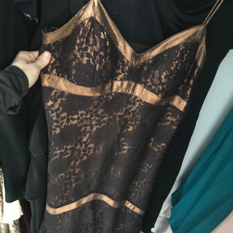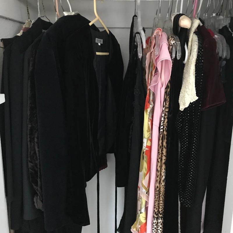 Lot includes approx. 40 pieces of ladies formalware including dresses, tops, slacks, and jackets. Sizes range but most seem to be small or medium. Name brands include Calvin Klein, Anne Taylor, Jones New York and more. See pics. Local pickup only.