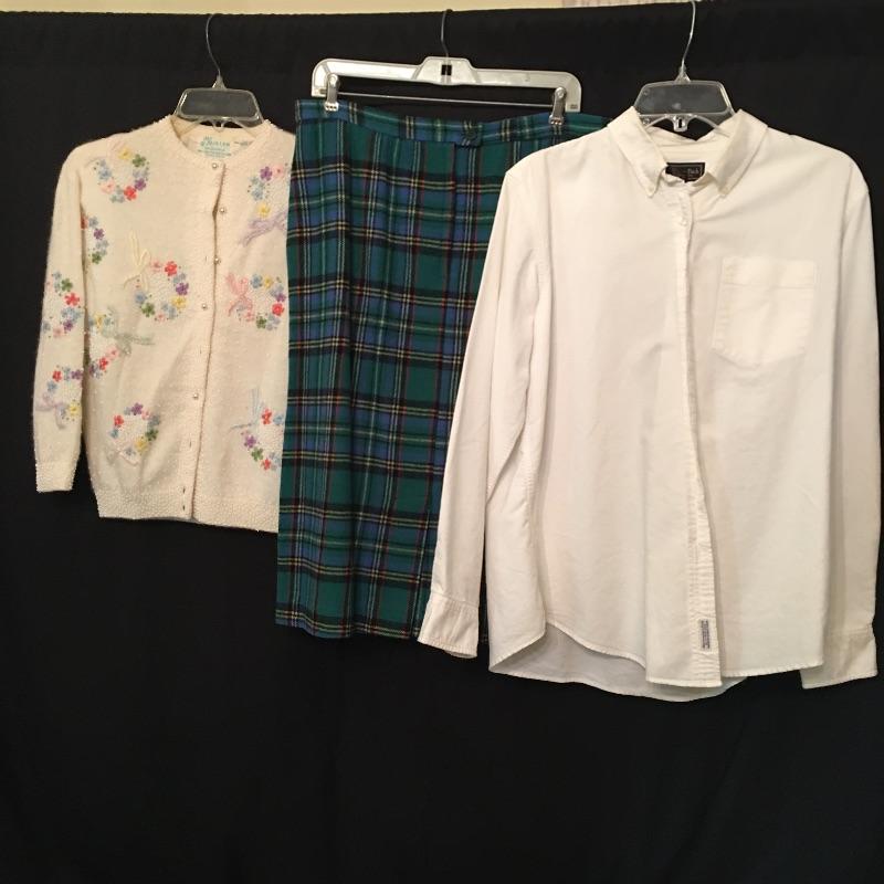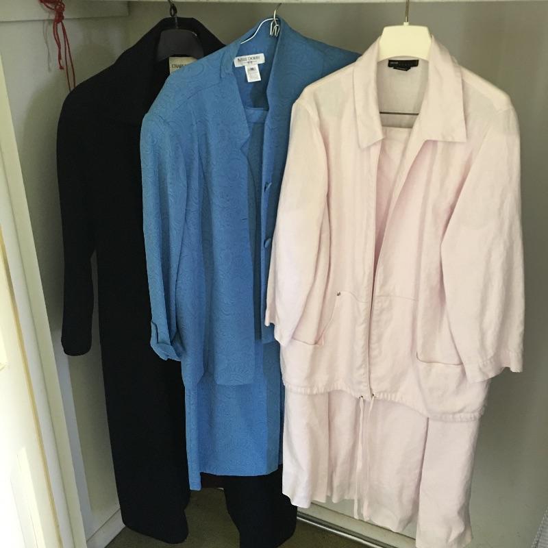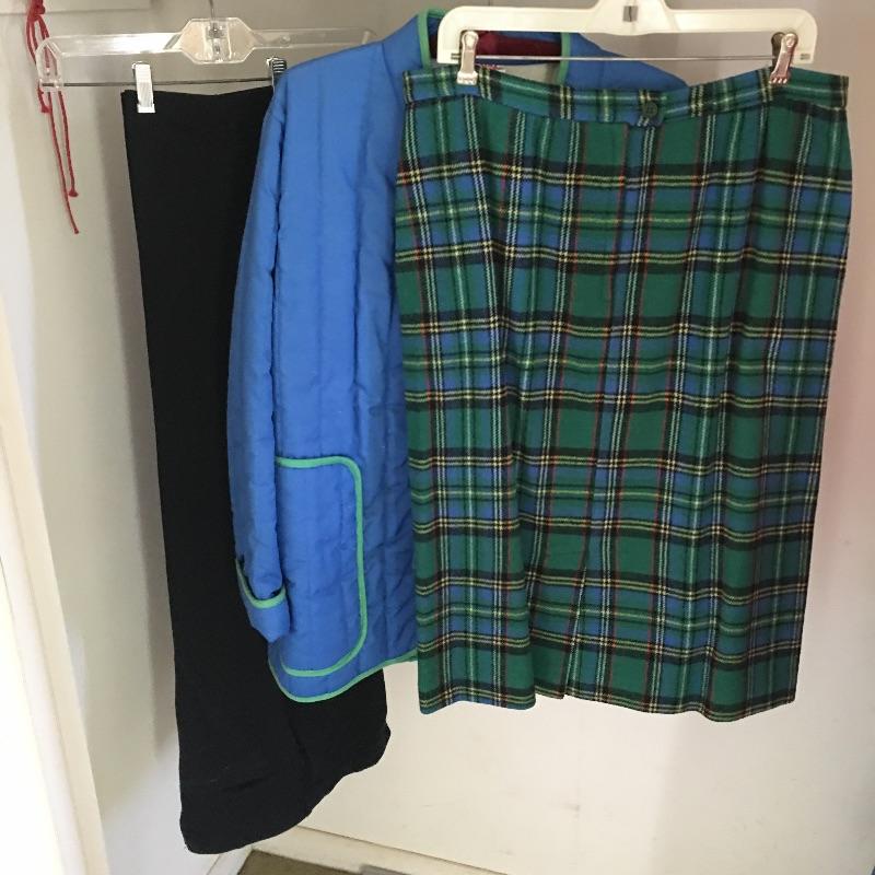 A plethora of ladies clothes is on offer in this lot including sweaters, wool coats, fleece, suits, skirts and more . Lot includes such brands as Abercrombie & Fitch, McMullen, Salem, Bob Marche. Diane Roberts, Old Navy and more. Sizes are L-XL.