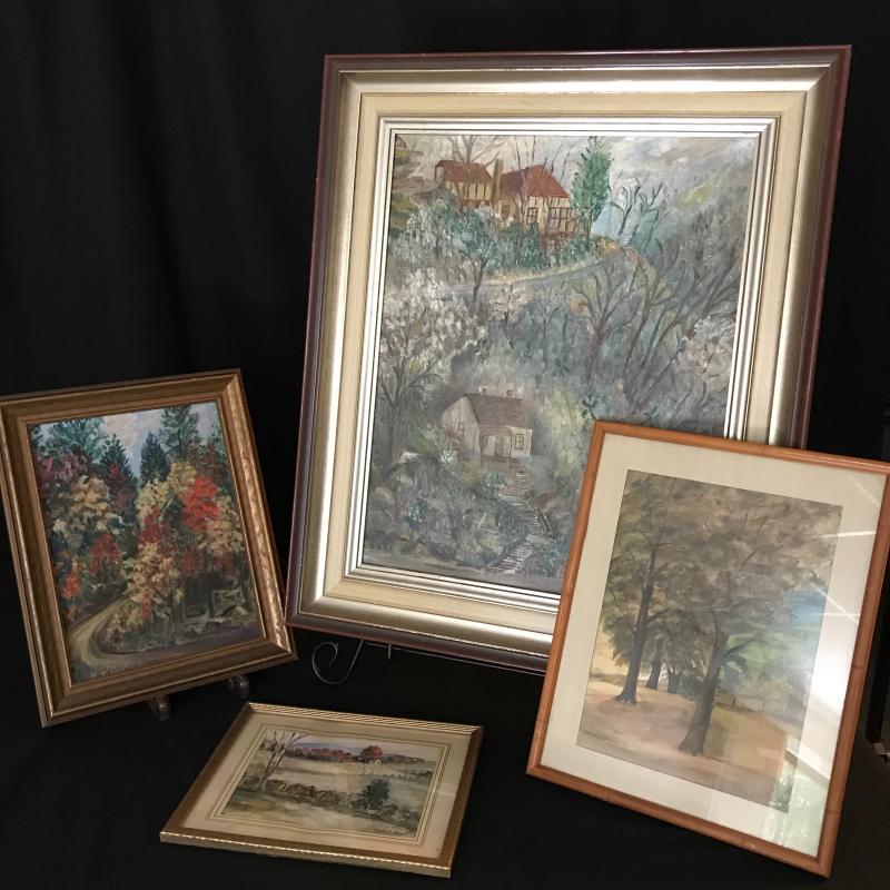 These four paintings (two watercolor, two oil) are by Miranda S. MacCleod. Largest is approx. 25.5” x 21.5”. Shipping available or local pickup in Arden, NC. Please contact UPS for rates as shipping artwork can be expensive.