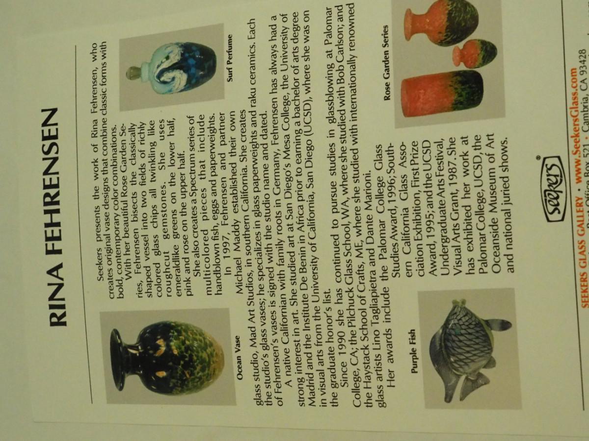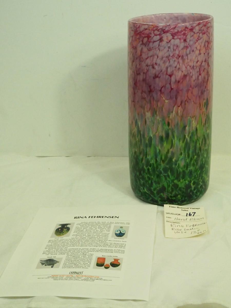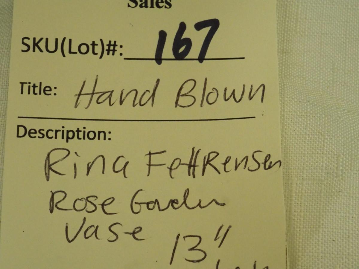 Lot 167- Rina Fehrensen hand Blown art glass Rose garden vase 13"