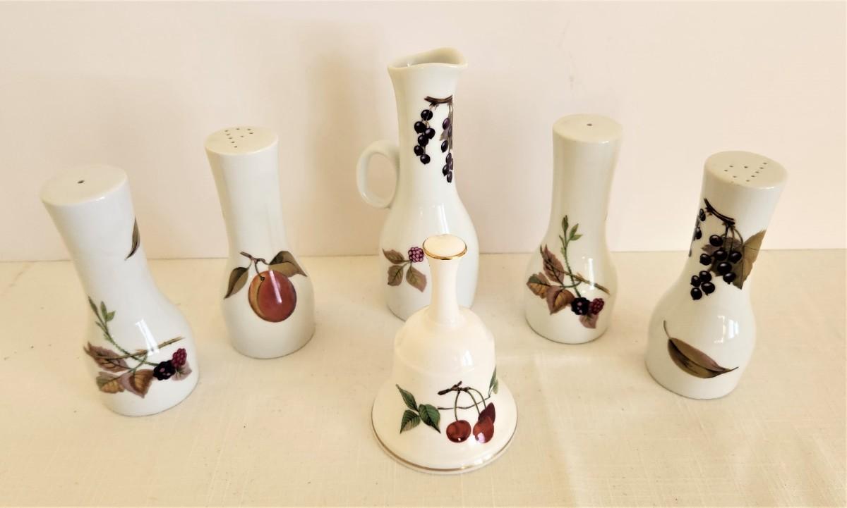 Lot #167 Royal Worcester "Evesham" Bell, Salt/Pepper, Cruet