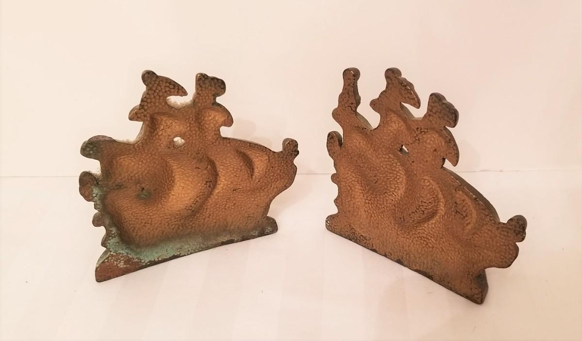 Lot #167 Vintage Pair of Heavy Metal Bookends - Sailing Ships