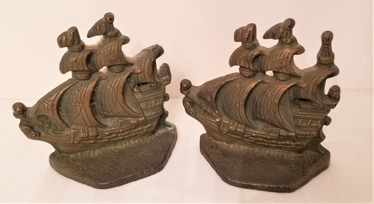 Lot #167  Vintage Pair of Heavy Metal Bookends - Sailing Ships