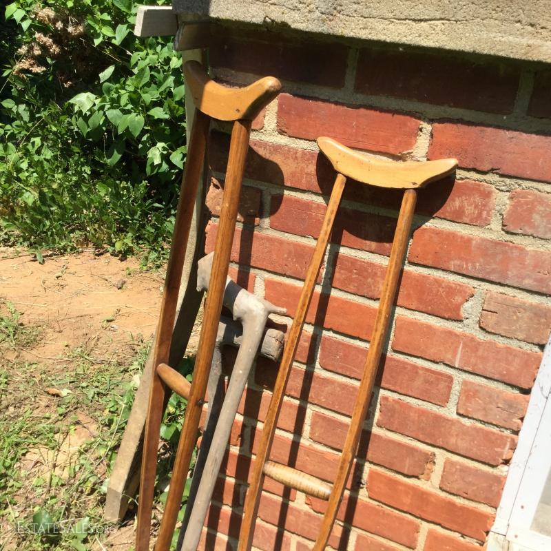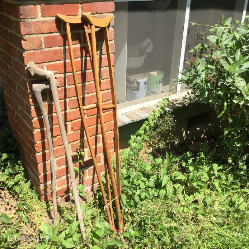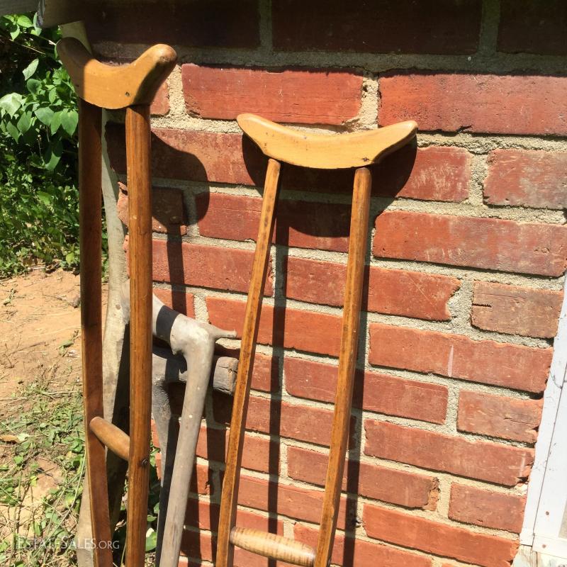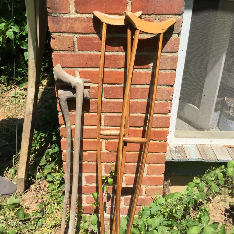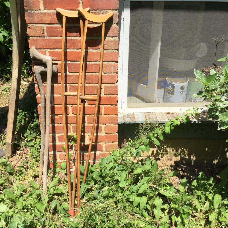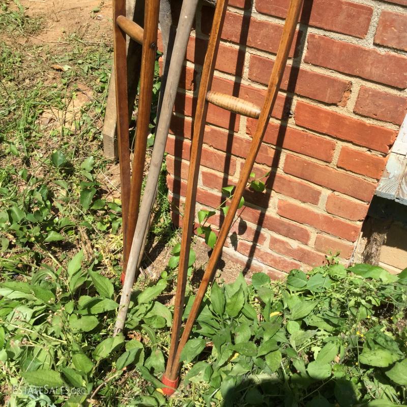 A pair of Crutches and two Walking Sticks. This lot is available for local pick up in Saluda, NC.
