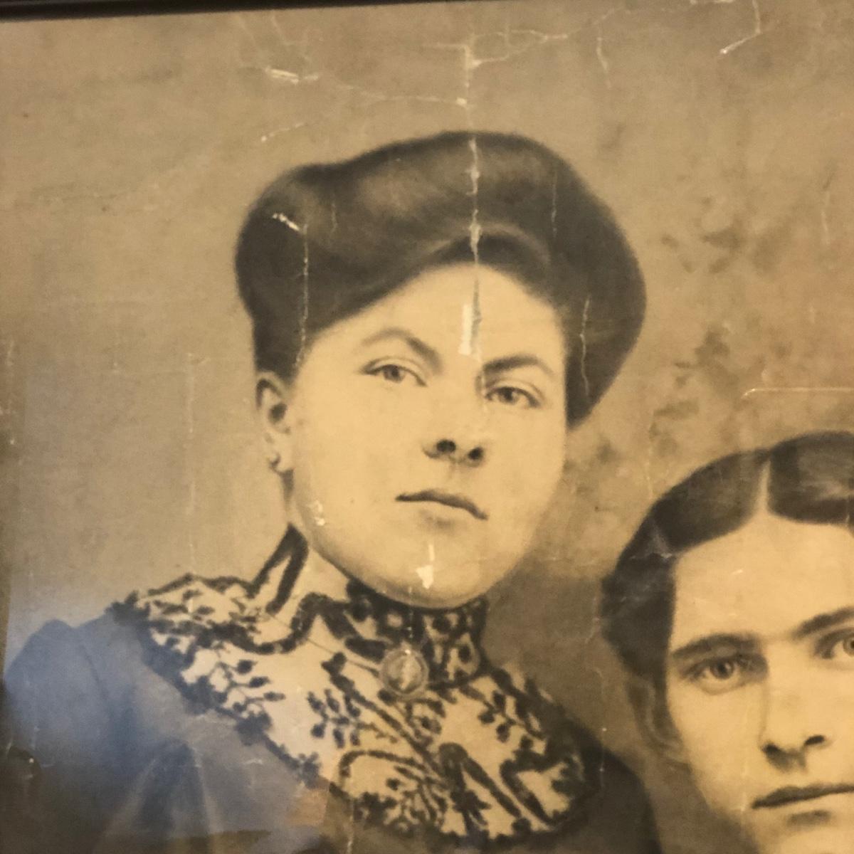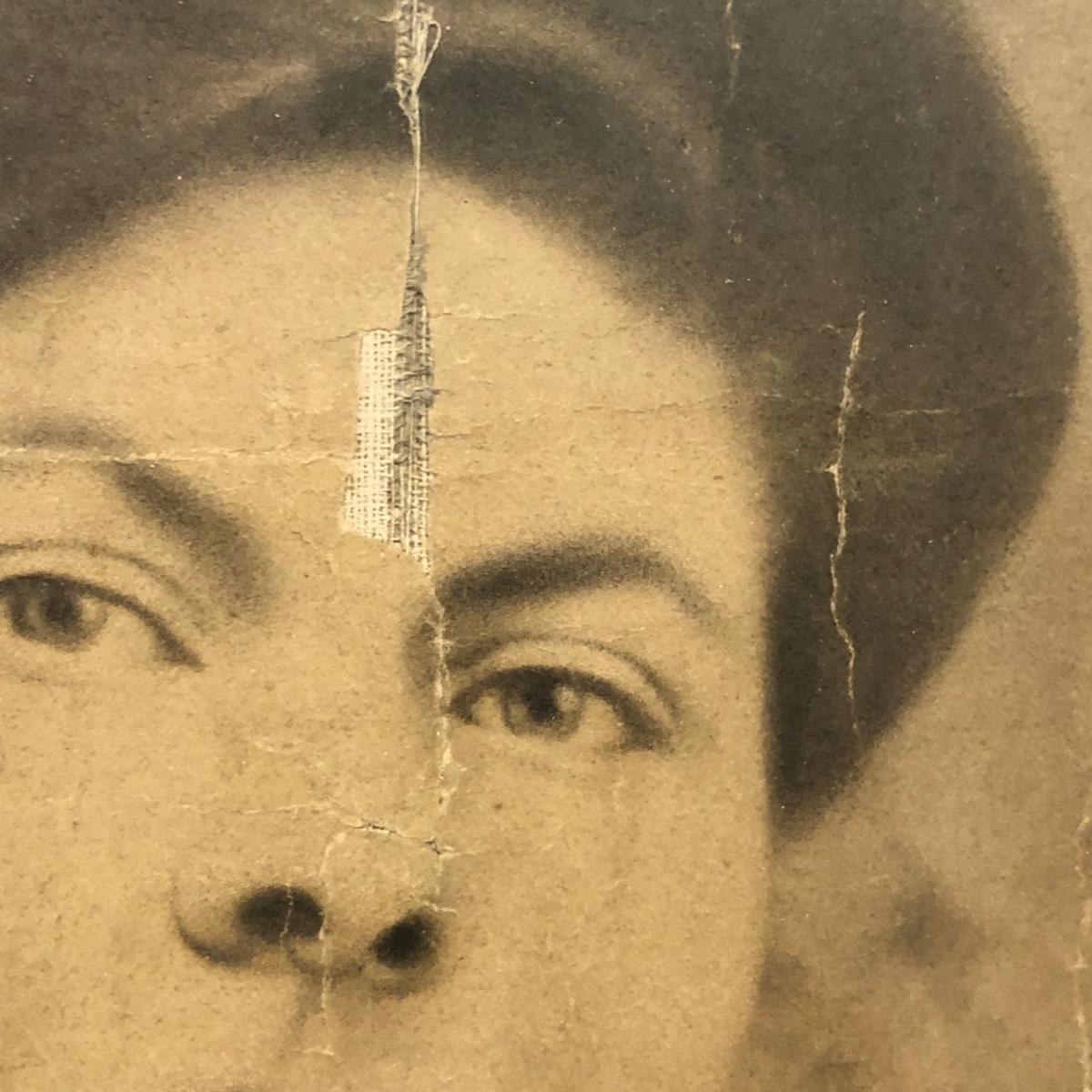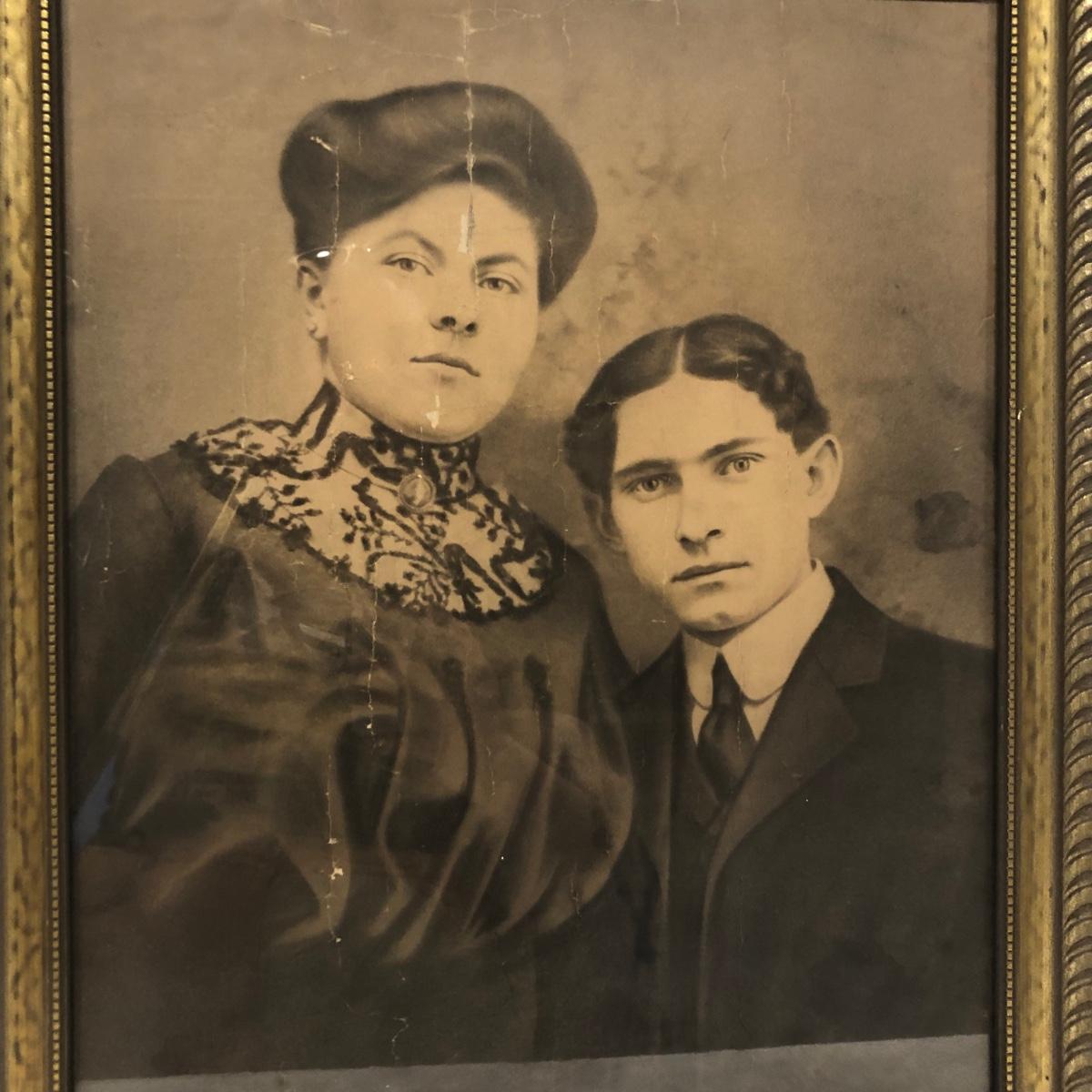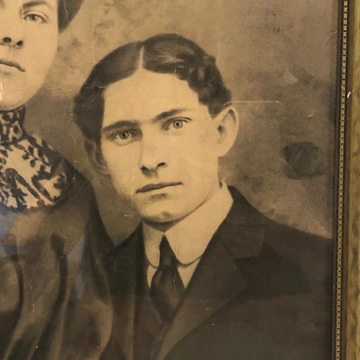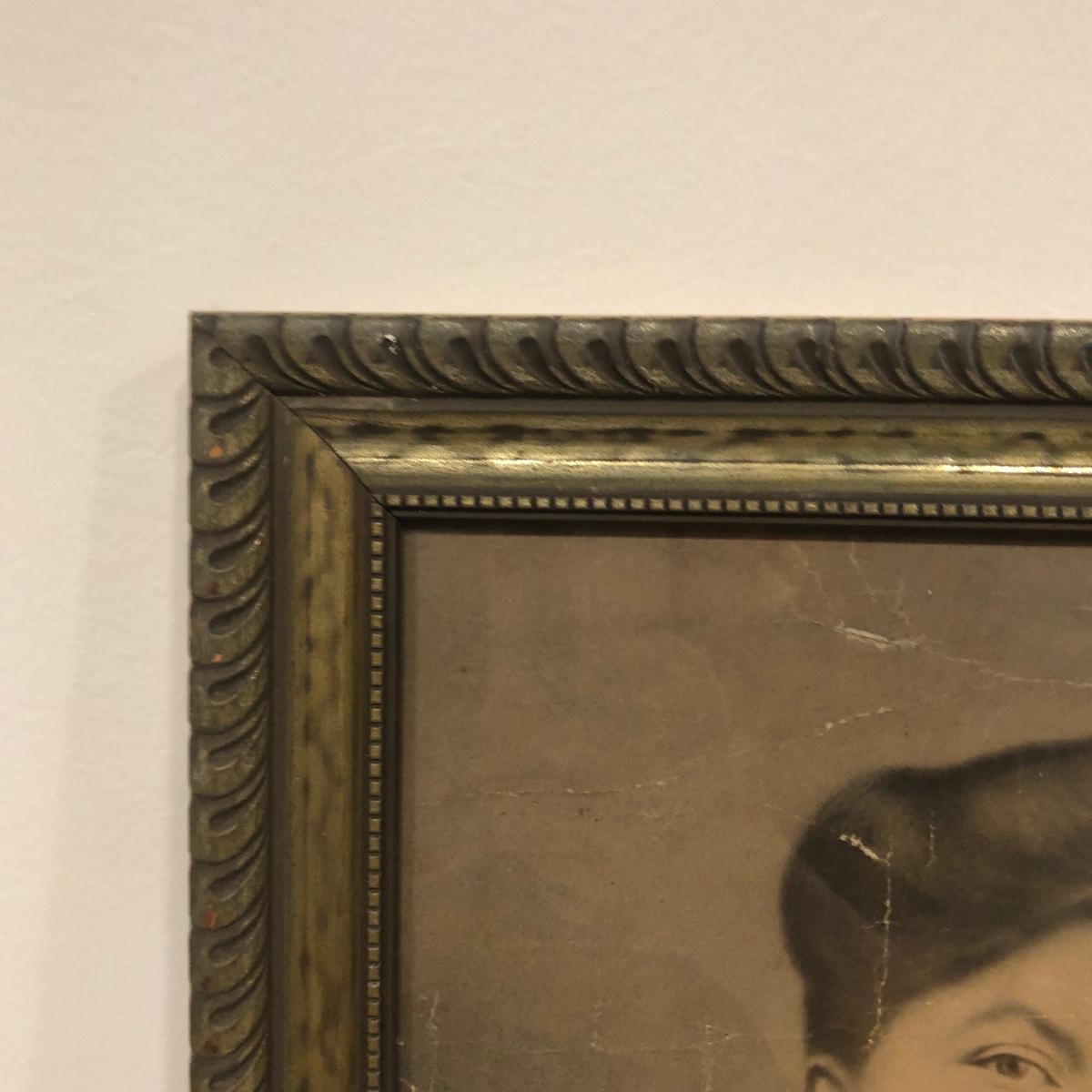 Mirror has condition issues due to age and measures 13 x 18 inches. Photo measures 17 x 21 inches.